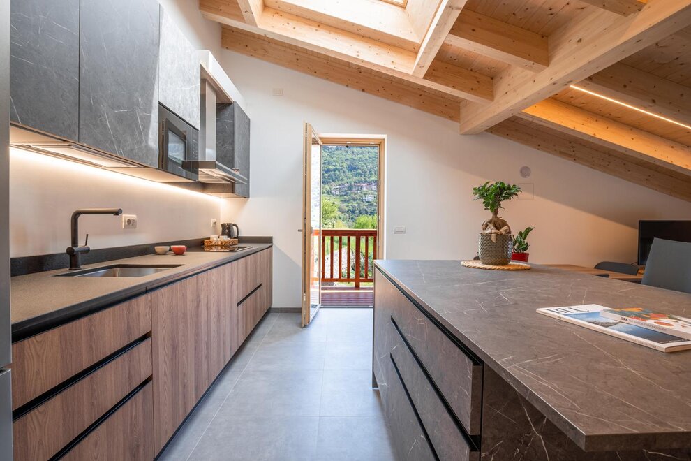 From the balcony and windows, you can admire the valley and the charming town of Tenno with its castle.