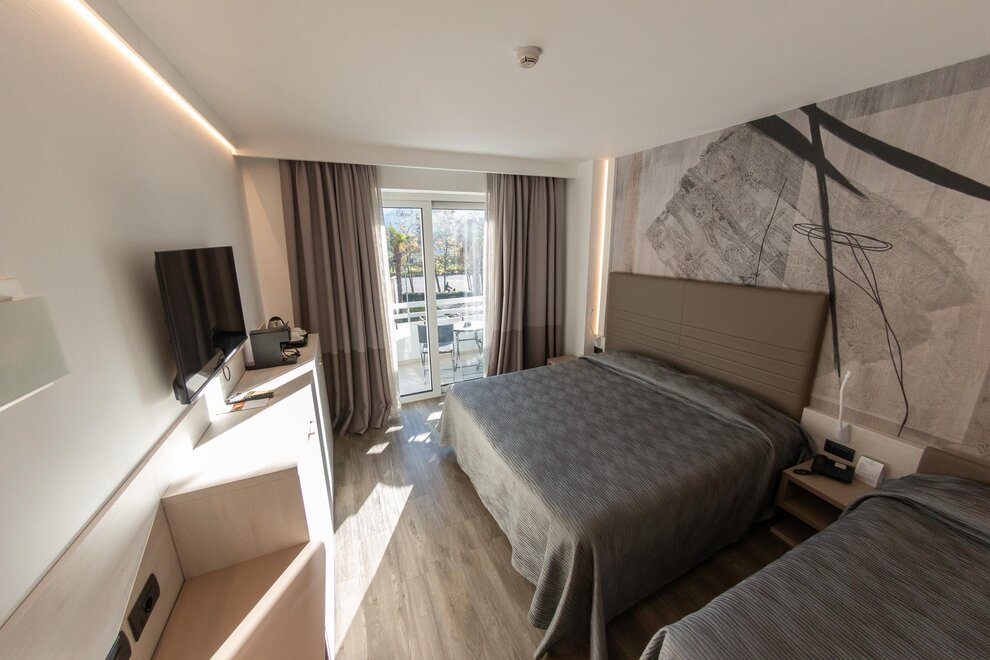 Our superior triple room with garden view is the ideal choice for families or small groups seeking a stay marked by tranquillity and style. The privilege of overlooking our well-kept garden makes every moment even more relaxing. Fully air-conditioned and furnished with a modern design, the room features free Wi-Fi, satellite LCD TV, and minibar for complete comfort.