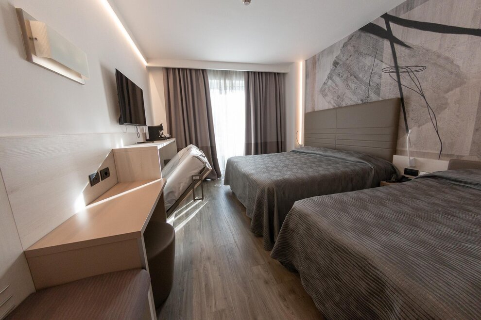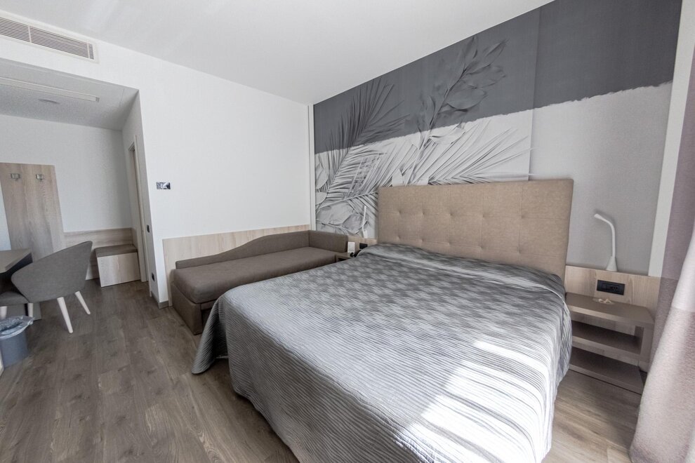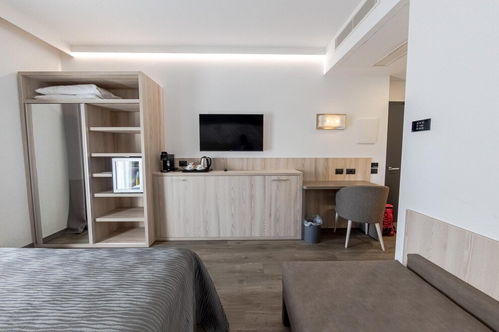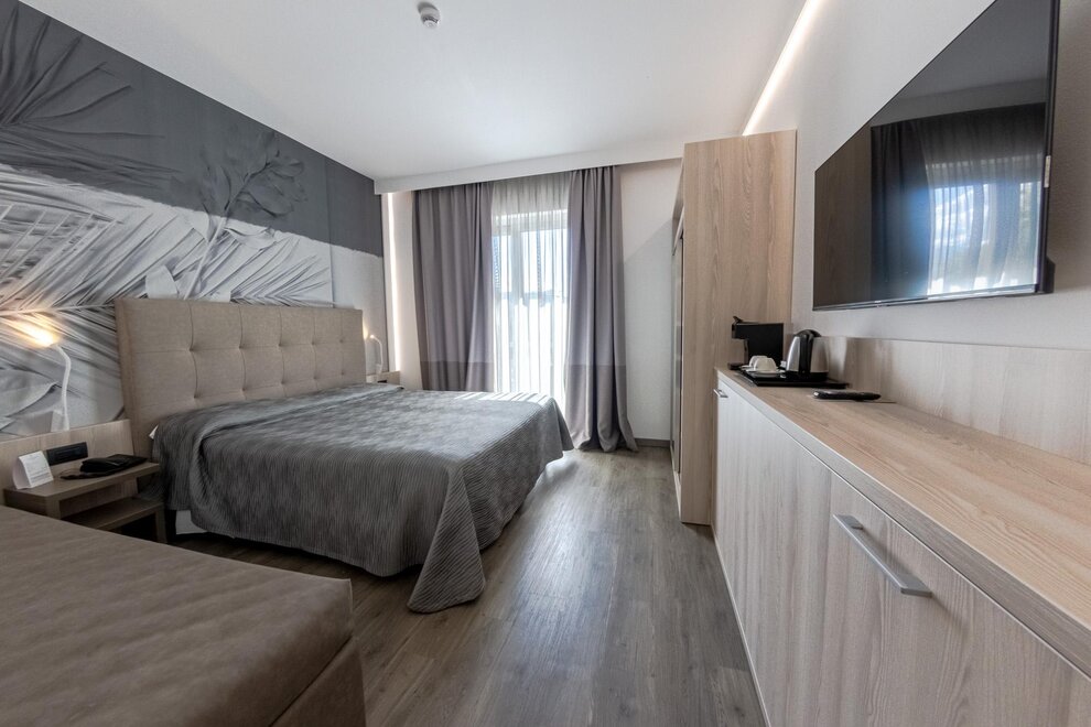 Our quadruple room is the perfect solution for families or groups seeking a spacious and comfortable stay. Air-conditioned and furnished in a modern style, it offers free Wi-Fi, satellite LCD TV, and minibar to guarantee maximum relaxation at any time.