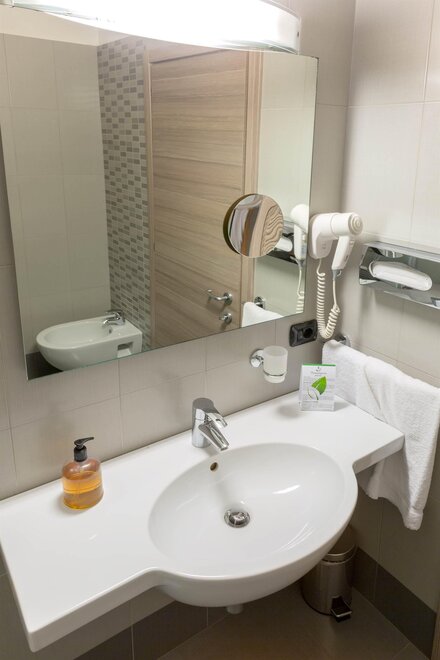 The room is equipped with air conditioning, free Wi-Fi, satellite LCD TV, and minibar to make every moment of your stay pleasant and relaxing. The private bathroom, with bath or shower and complimentary courtesy set, guarantees impeccable comfort. For those travelling in a group or with family, connecting rooms are available to combine practicality and proximity.