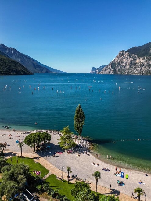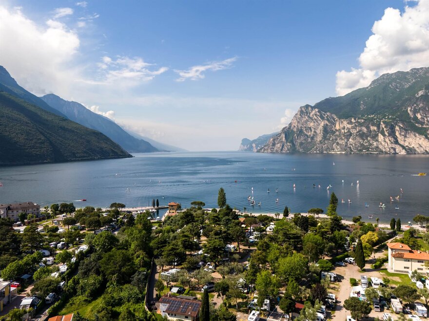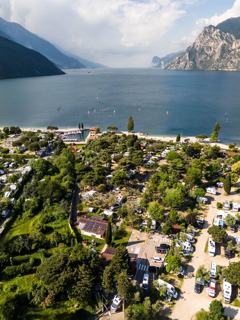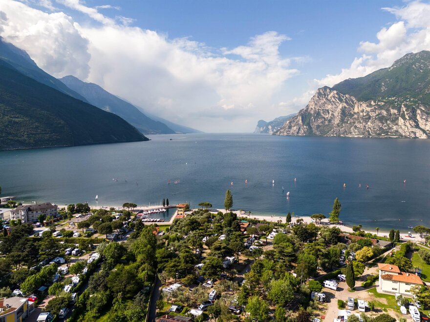 This campground is located directly on one of the most beautiful beaches of Lake Garda, which connects it to the town of Torbole. The structure is ensconced in 15.000 m2 park abounding in trees and plants typical of the Mediterranean climate. It is a real oasis of silence, ideal for families and for sailing and mountain bike lovers, The area offers the possibility of pleasant excursions.