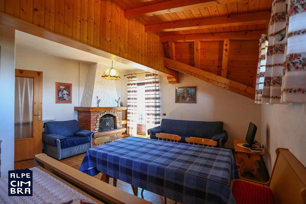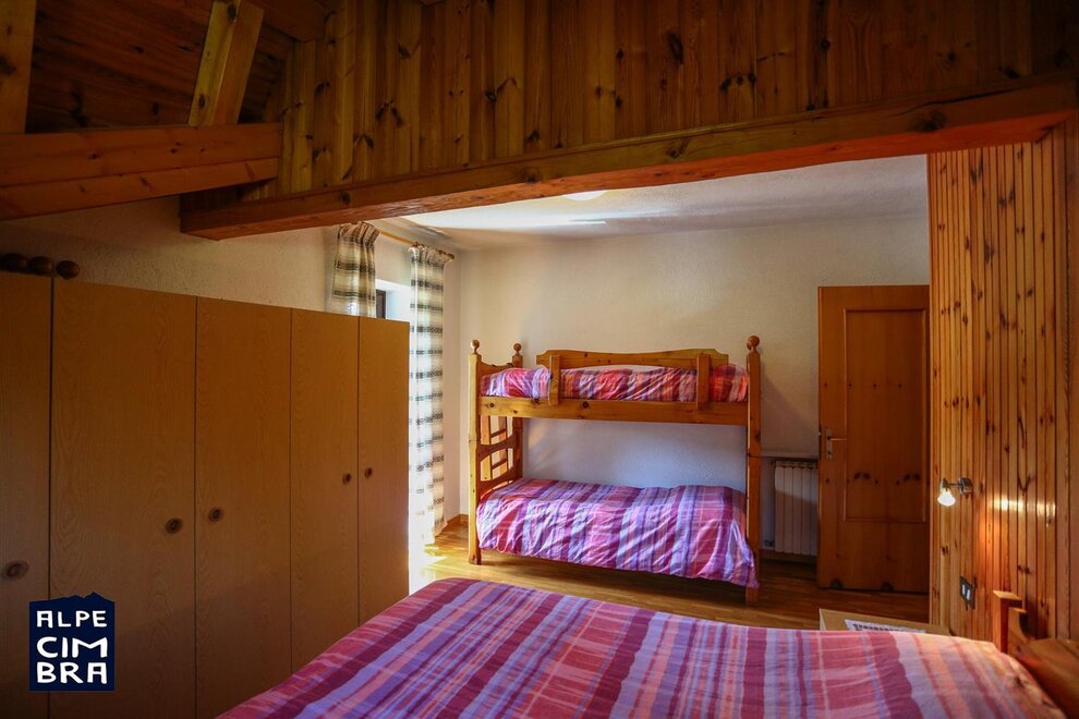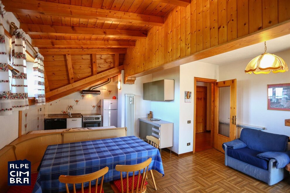 Apartment in Trentino at Colpi di Folgaria, approximately 70 sqm on the 1st floor can accommodate 4 or 6 people, consisting of 1 double bedroom and a room with a double bed and bunk bed, windowed bathroom with tub, living room with kitchenette equipped with dishwasher and oven. Terrace. Furnished in wood.