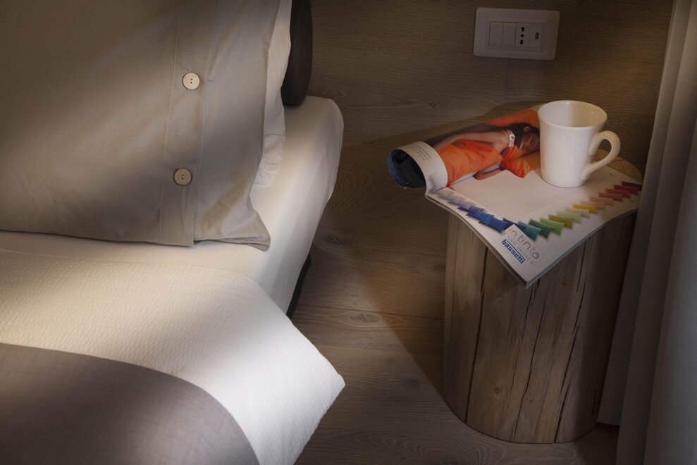 Comfortable rooms of 19 m² … Double room, en-suite bathroom with shower, wooden floor and beams overhead, air conditioning, safe, mini fridge, tv-sat lcd 32’, tea making facilities, hair-dryer, courtesy set, free high speed Internet connection and free Wi-Fi, non-smoking room (twin beds and single use upon request)