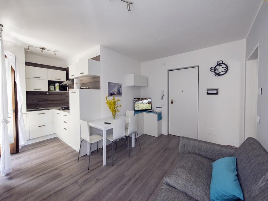 Located in Arco in a quiet, residential but close to all services area (bus, supermarket, pharmacy, hospital, etc.). The apartment has a double bed with TV, living room with kitchen with double sofa bed, flat screen TV SAT, fully equipped kitchen with utensils, dishwasher, refrigerator, stove, microwave, kettle, cleaning products.