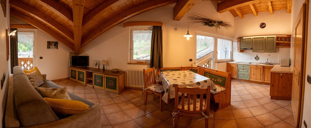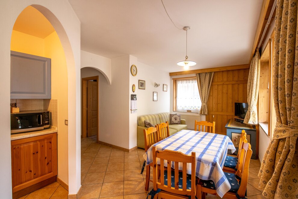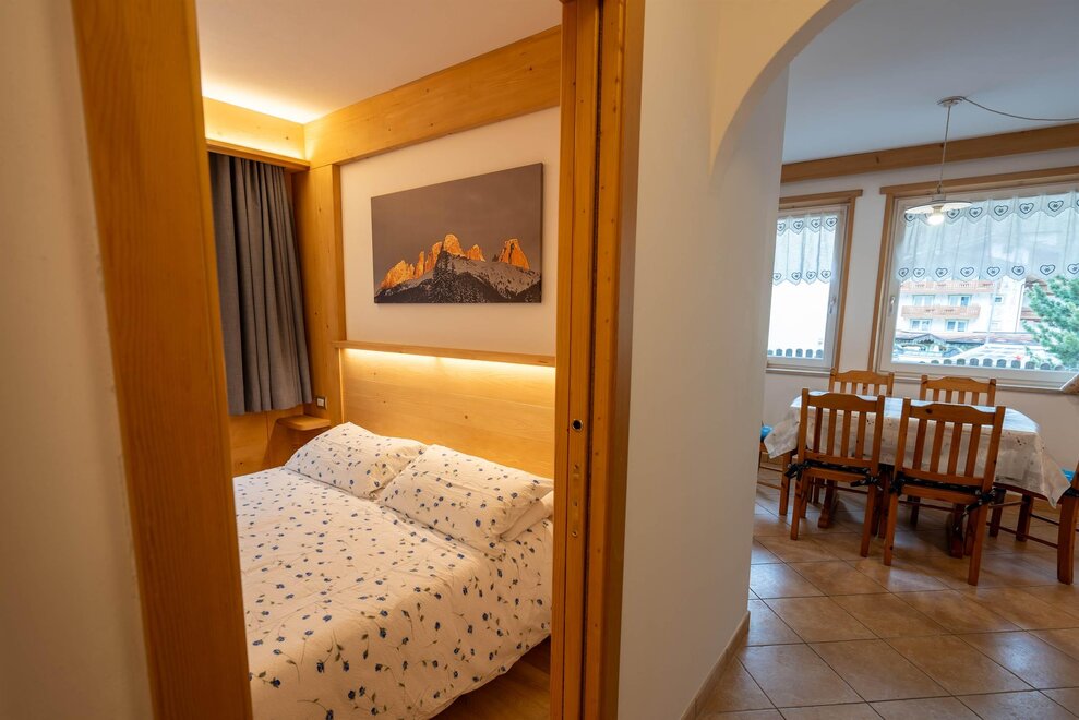 Dear visitors Cèsa Castlunger is a private family-run structure that offers apartments with 2/5 beds. The property is located in the center of Canazei, 200 meters from the Canazei / Pecol ski lifts, from the Dolaondes aquatic center, from the cinema and from the playground. sports and suvenir. The proposed apartments are composed as follows: one or two bedrooms, fully equipped kitchenette with four ceramic hobs, dishwasher and microwave, bathroom with shower, washing machine, hairdryer, living area with sofa and Smart TV, WiFi, balcony, one seat car per apartment, ski room with boot dryer, sun terrace with tables, chairs and umbrella. Small pets are allowed on request