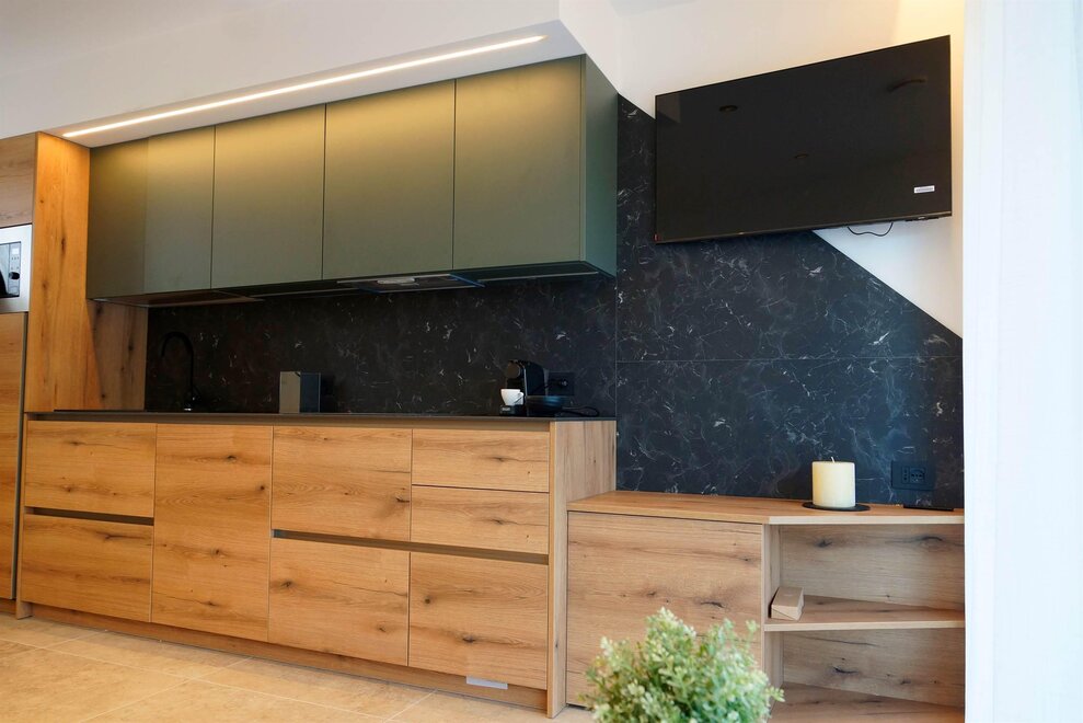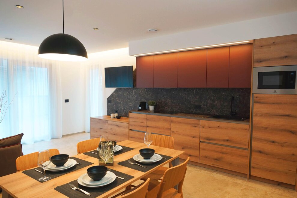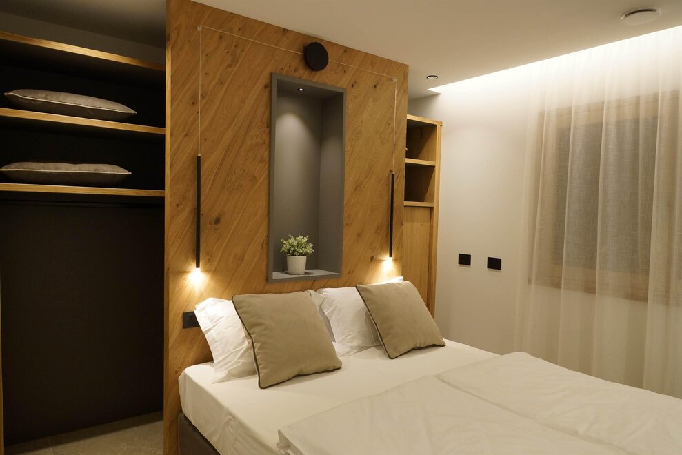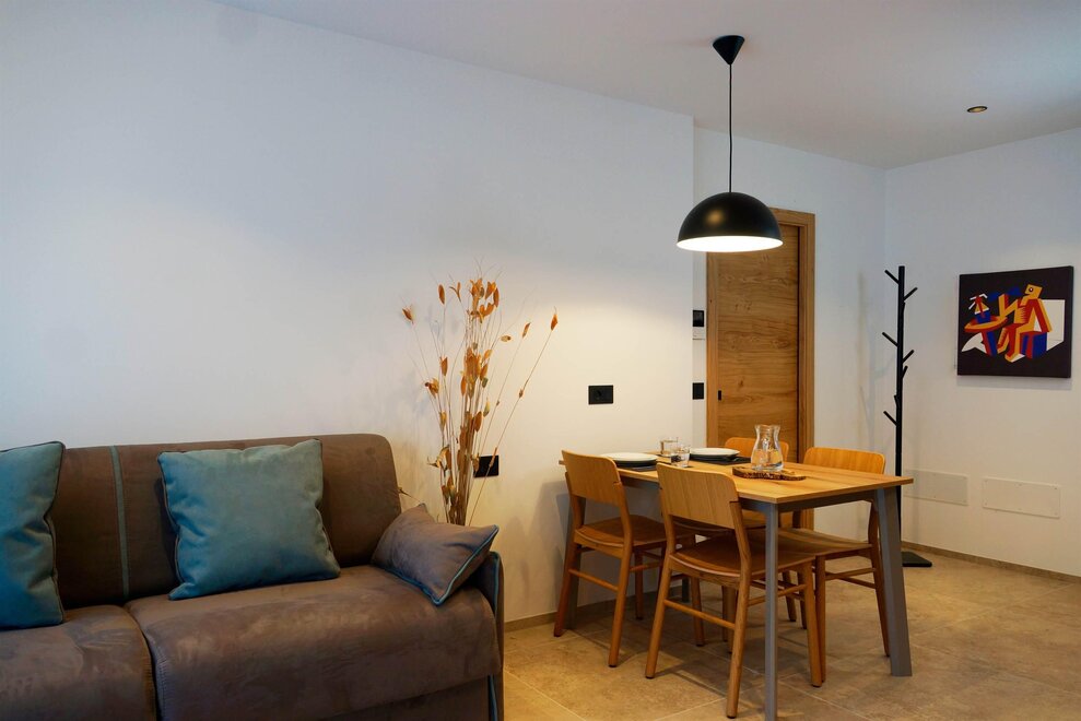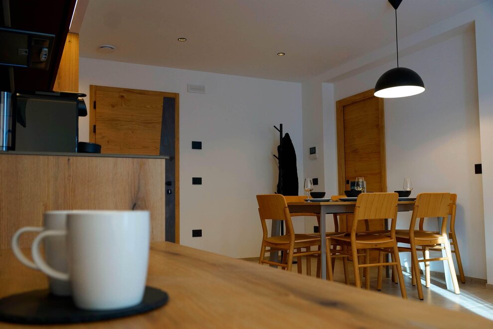 In a prime location in Andalo, on the road that climbs towards Fai della Paganella, stands Chalet Larix, which enjoys a spectacular view of the Brenta Group and the slopes of Paganella. The property - completely renovated in December 2023 - consists of 9 apartments, in energy class A+, of various sizes distributed over three levels. The apartments are elegantly furnished and equipped with every comfort for an unforgettable holiday. Guests have access to a covered parking space and a reserved cellar for ski storage with a modern boot dryer or bikes. There is a shared laundry area with a professional washing machine and dryer, as well as an ironing board and iron.
