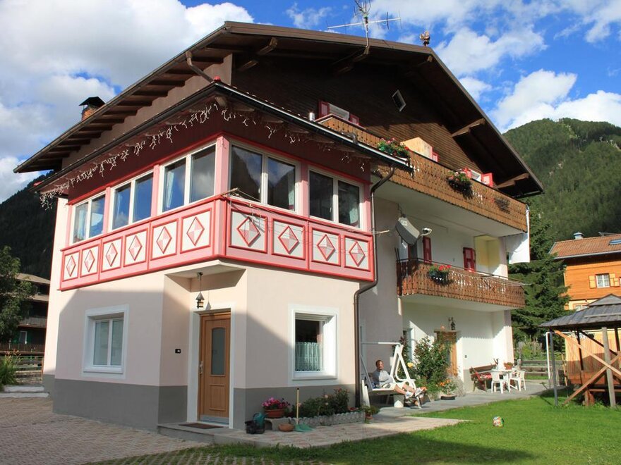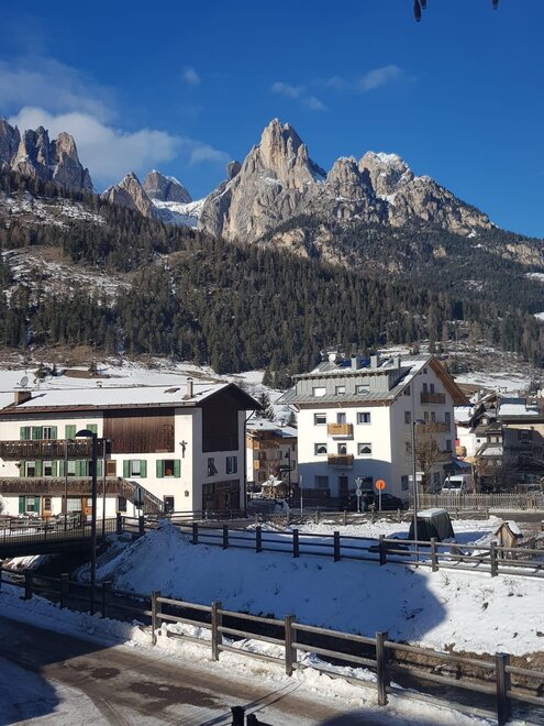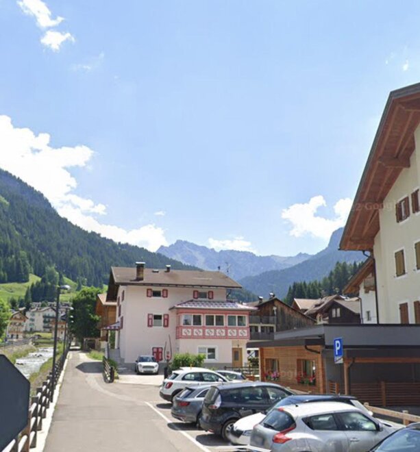 Without the navigator: when you are at the Pozza di Fassa's traffic roundabout, take the first exit to Strada de Meida (the Town Hall is on your right), continue straight for around 500m, then turn left onto Strada Don Lodovico Gross and after around 60m, turn right before the bridge in Strada Sas da le Undesc. The destination is on the left about 40m away, it's a big flamboyant pink villa, you can't miss it