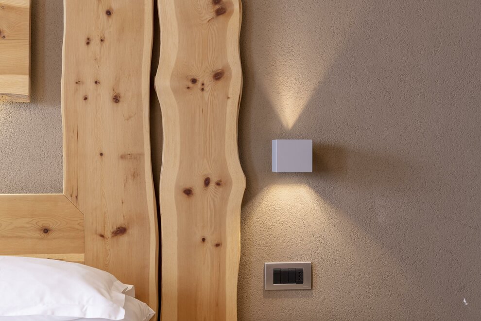 Room furnished in fragrant pine wood with view of the Sassolungo Mountain and equipped with private en suite bathroom with bidet, shower and complimentary toiletries, tea and coffee making station, desk, safe, free Wi-Fi and flat-screen TV with satellite channels. Please specify bed preference when booking.