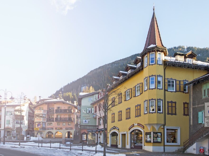 Located in the town centre, in Piaz de Ramon, it benefits from any kind of service you might need. From its windows you will be able to enjoy the beauty and vivacity of Moena as well as the allure of the Dolomites’s peaks.