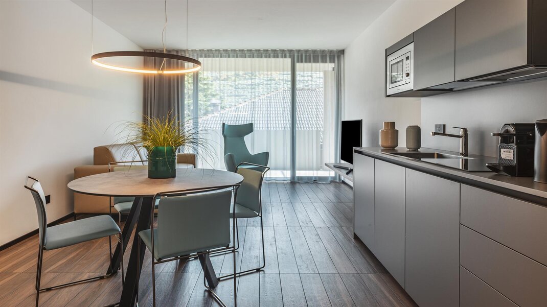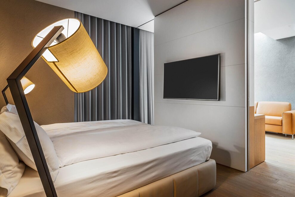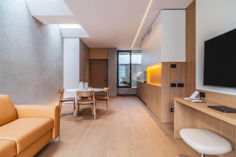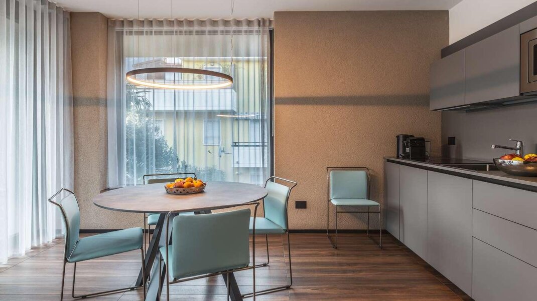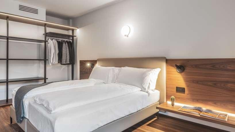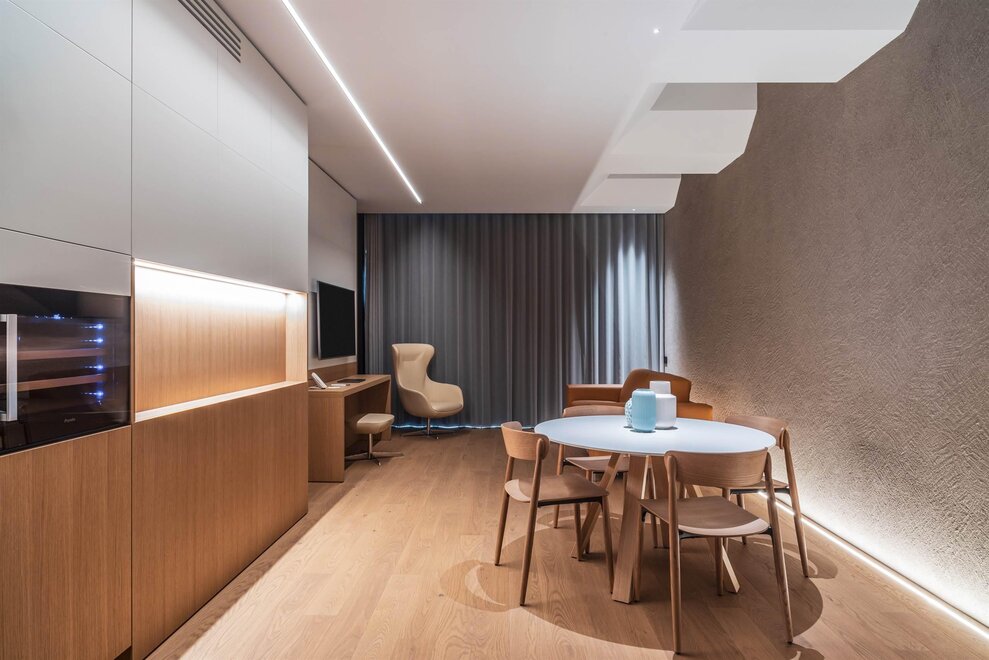 The interiors of La Rocchetta Studio feature extraordinary design elements such as the lighting created by Davide Groppi, with the revolutionary ''Infiniti" and ''Nulla" systems. The crowning highlight: the warm parquet flooring in the sleeping area made with Swiss organic wood.