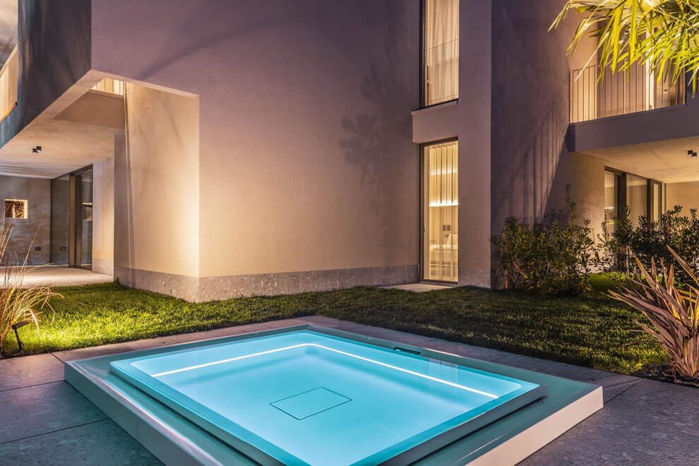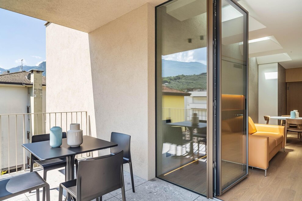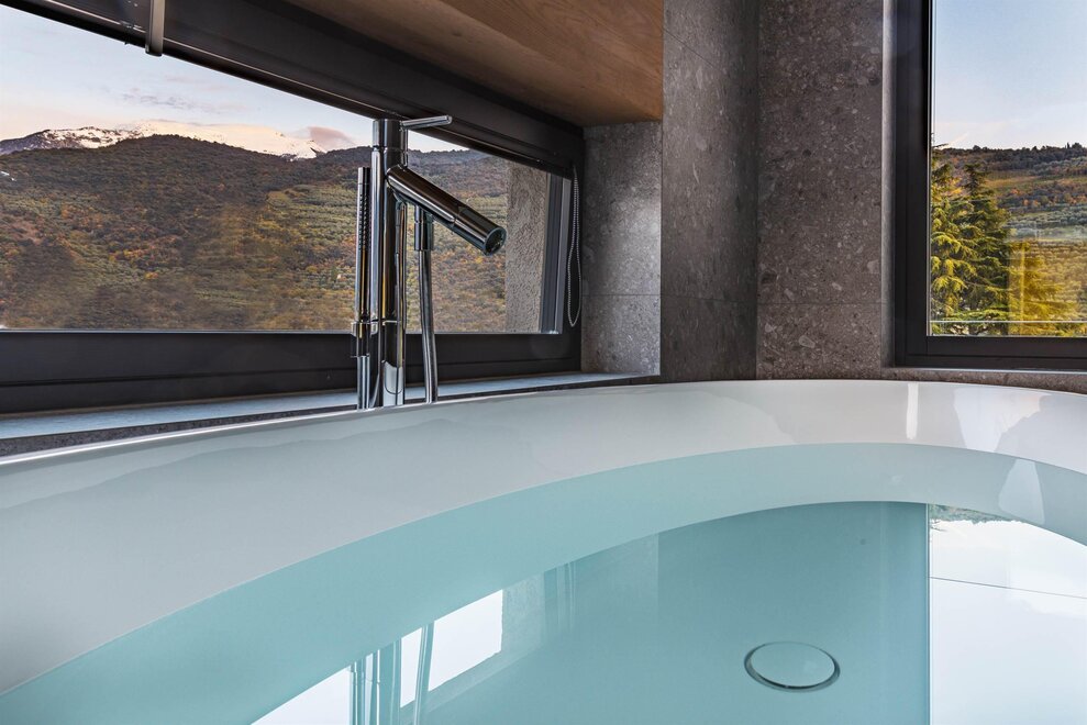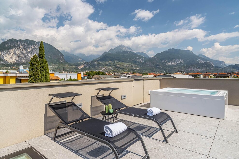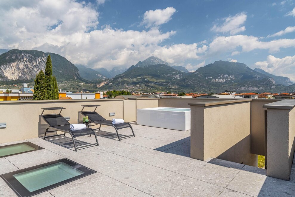 To complete the tableau, an evocative terrace with exclusive access to the roof solarium, featuring a Treesse Fusion mini infinity pool with whirlpool and chaise longue. Immersed in the sweet embrace of hot water, you can enjoy an unforgettable 360° view of Riva del Garda framed by the mountains.