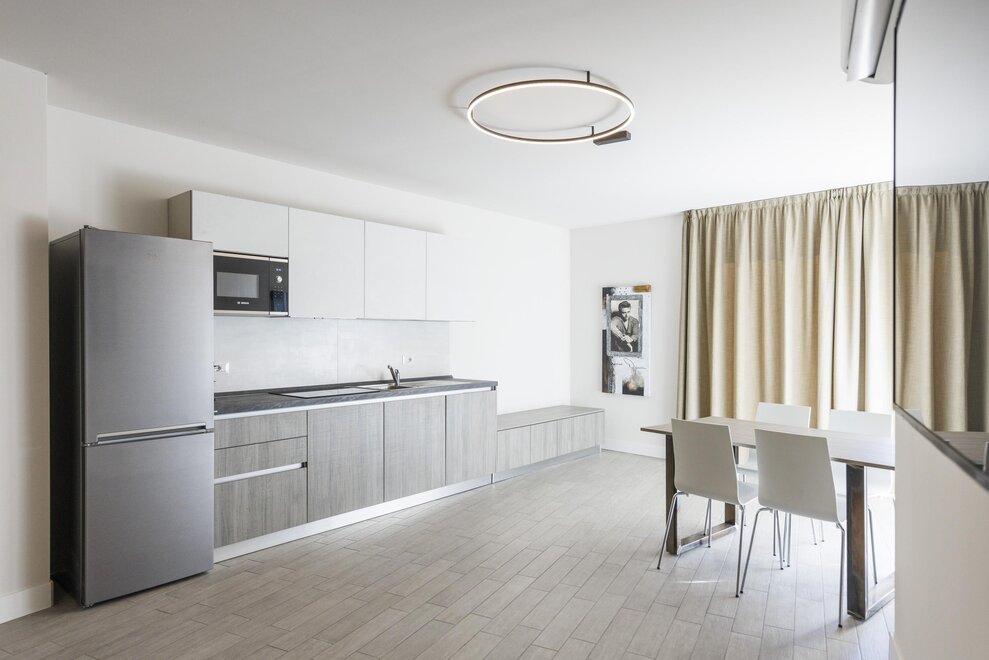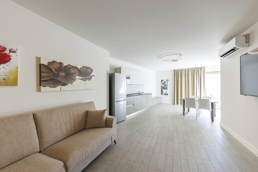 desk, refrigerator, dishwasher, heater, hairdryer, bed linen available, towels available, air conditioning, dishes available, tiled or marmor floor, quiet room/apartment, crockery and cutlery , satellite TV, socket close to bed, family room/apt., separate bedroom/s: 2, linen provided , bedding, kitchen and table linen, oven, essentials (towels, bed linen, soap, toilet tissue), safe, dish sink, toilet laundry, kitchenette, separate bedroom/living room, coffeemaker, closet, modern furnishing, refrigerators available, cooking possibilities, WiFi, midweek cleaning only on request - free of charge, electric stove, balcony, Wi-fi free of charge, non-smoking room/apt.