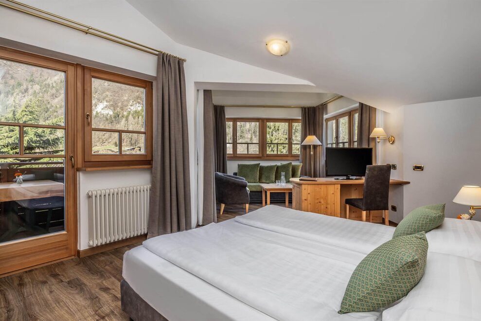 The Family Hotel Adriana is located in the heart of Trentino in the village of Locca, just over 1 km from Lake Ledro and 17 km from Lake Garda. The Family Hotel Adriana is found in a true corner of paradise in the midst of Trentino, at an altitude of about 700 meters. The Family Hotel Adriana, a few kilometers from Lake Garda, is the modern family hotel designed by us parents for the needs of you parents. At the Family Hotel Adriana in Trentino, your children will experience exciting adventures each day, filled with joy and the company of many friends. The carefully designed, spacious, and refined environments are immersed in the typical Trentino alpine style. Kindness and availability await you to meet every need, as well as every requirement of your children. The rooms and the characteristic Stube will create the warm atmosphere ideal for the best relaxation. Plenty of space and every comfort even in the rooms. The Trentino landscape of the Ledro valley and Lake Garda is a true oasis of paradise for sports enthusiasts, offering options for all tastes and levels. Knowing your children are well taken care of, you can live unforgettable experiences in complete peace on the slopes of the Prealps in Trentino with views of Lake Garda. All that's left is for you to choose whether to challenge yourself with mountain biking, enjoy beautiful walks and excursions, or even try paragliding or canyoning... The sauna, steam bath, relaxation area, energizing showers, and indoor solarium will allow you to dedicate all the time and care you deserve. We look forward to welcoming you in Trentino.