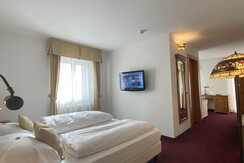 The superior room is between 25 and 30 square meters big and has a balcony. It is furnished in rustic style and has private bathroom with shower, minibar, telephone, safe, courtesy set, bathrobe and slippers to be used in the wellness centre.
