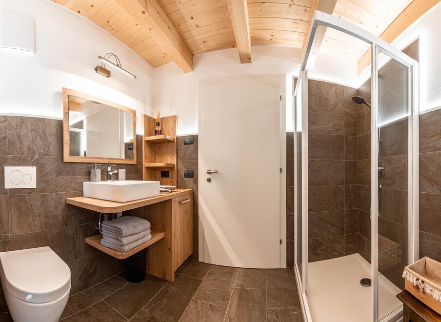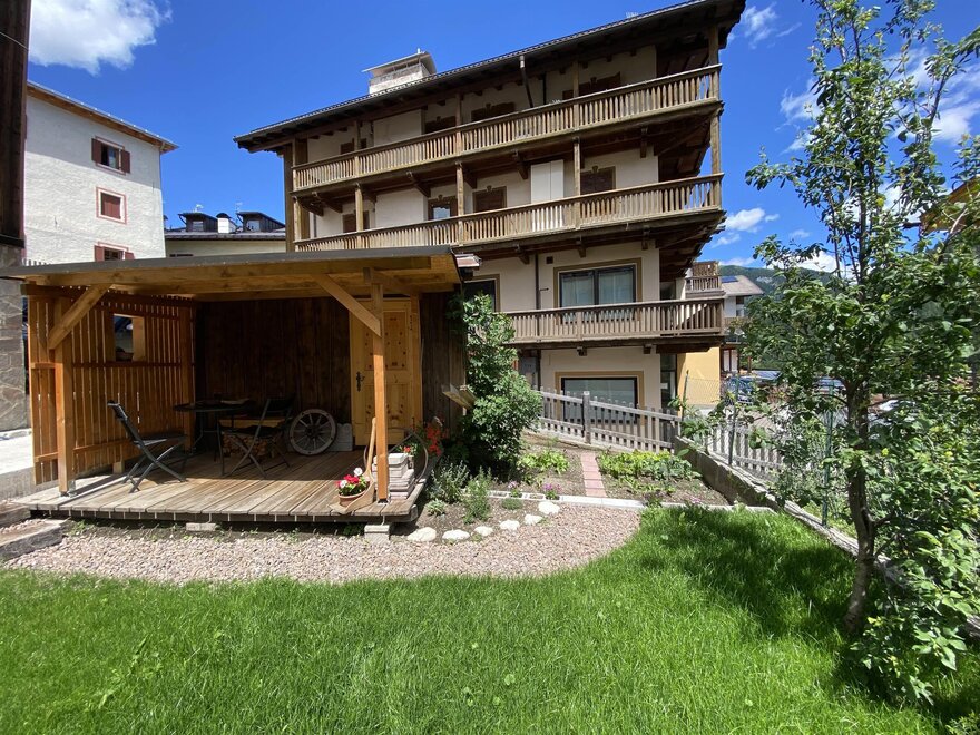 The house is brand new and it overlooks Vigo di Fassa little square with a magnificent view of Sas da le Doudesc mountain from the south face and Roda de Vael mountain from north.