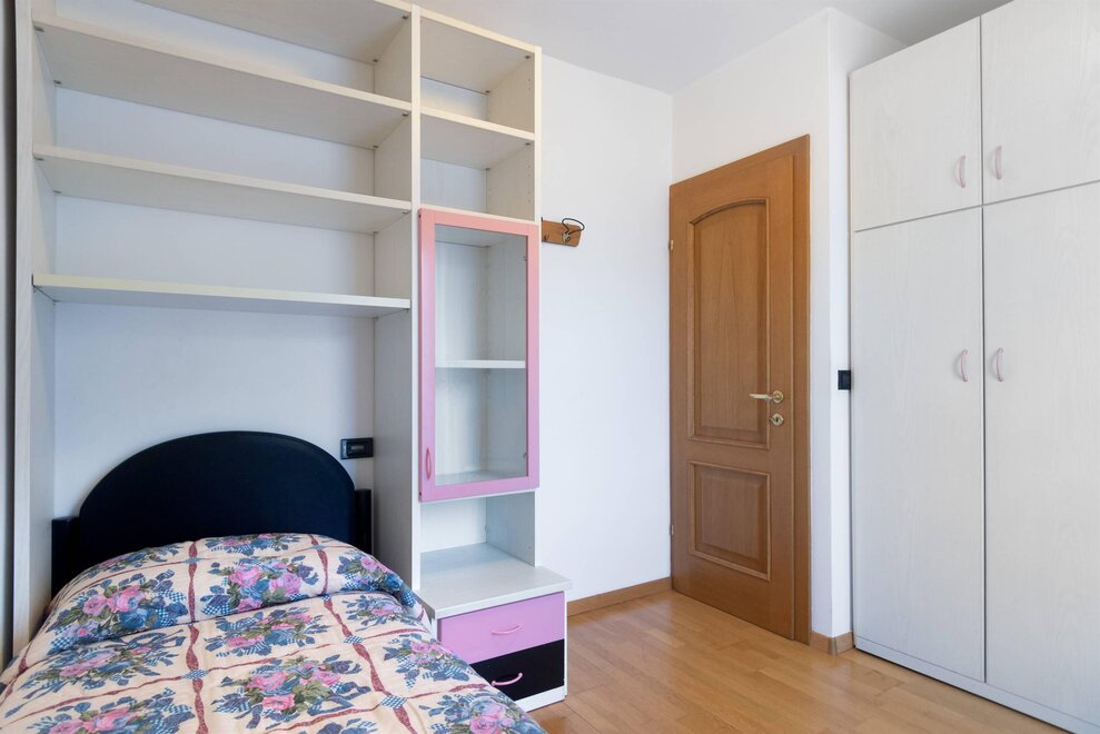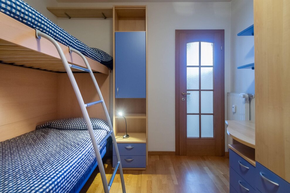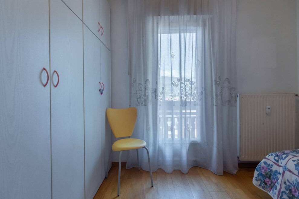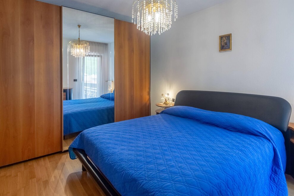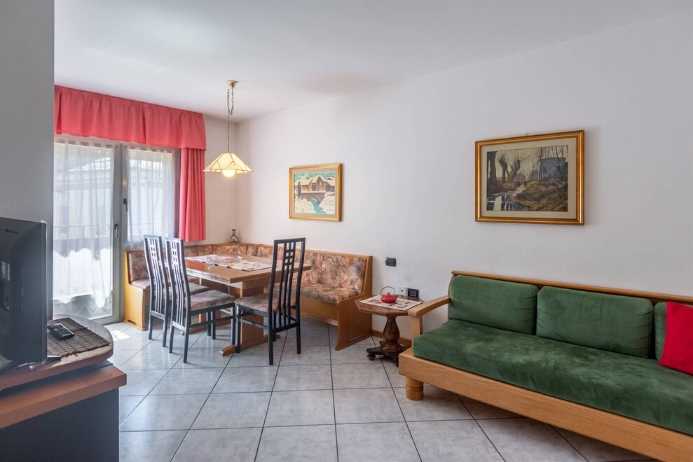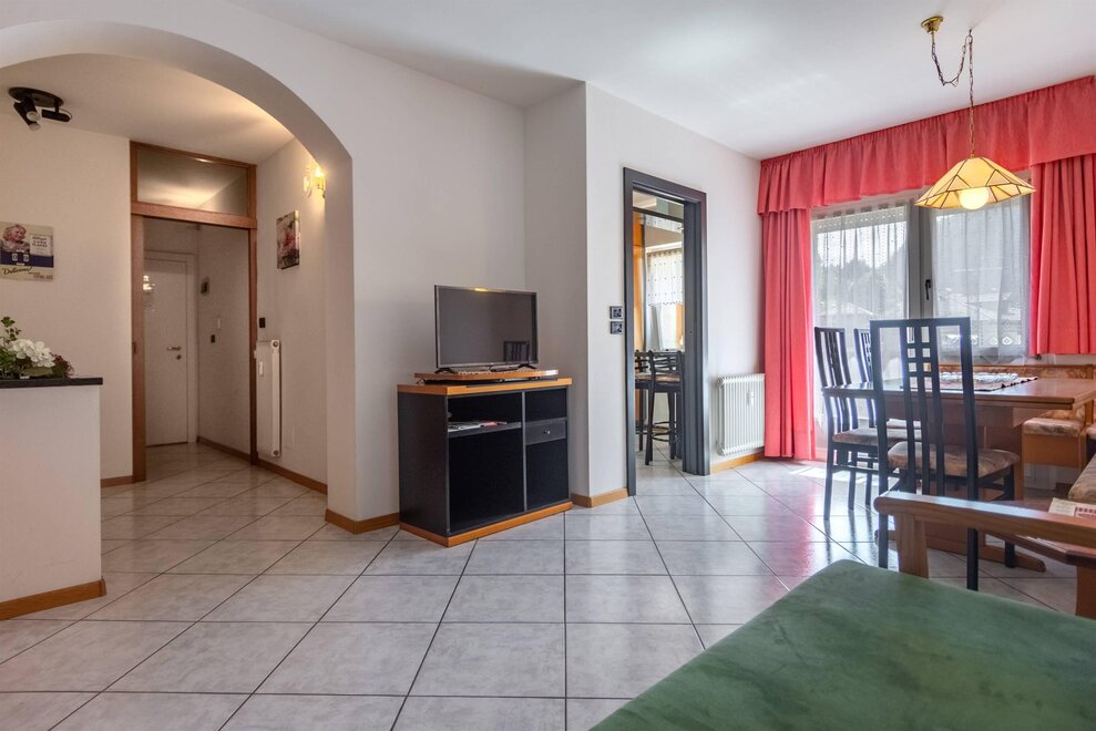 The apartment is located on the fourth floor of a building in the center of the town with a view of the main square and the Lagorai chain. Served by a lift, it is composed of: large living room with dining table and sofa, kitchen, three rooms including a double, a twin and a single, and two bathrooms, one with a shower and one with a hydromassage tub.