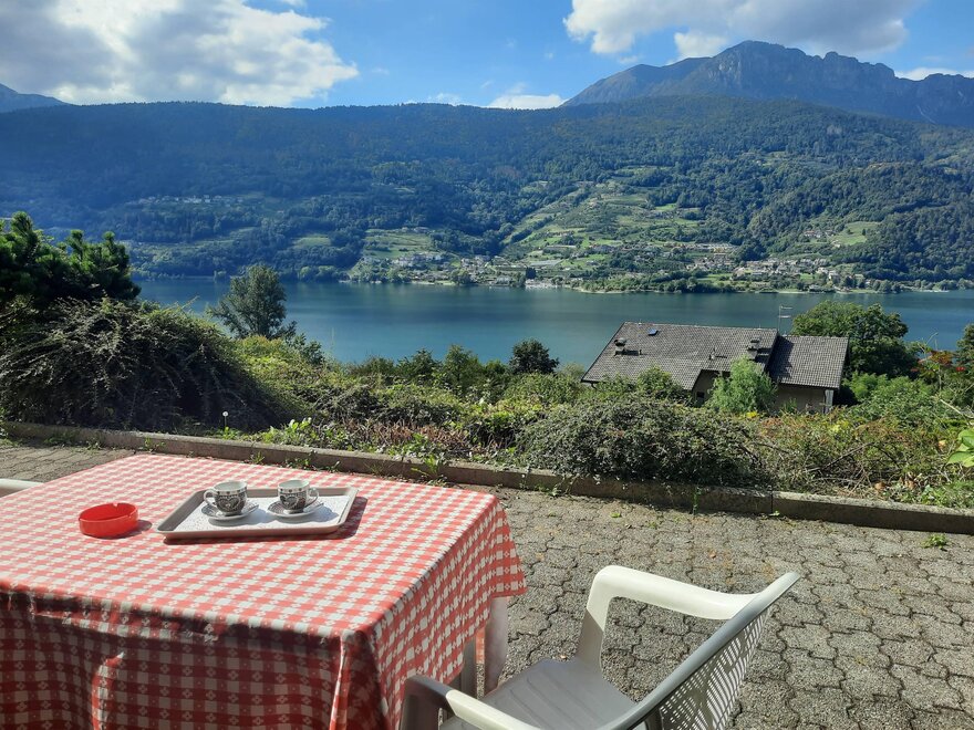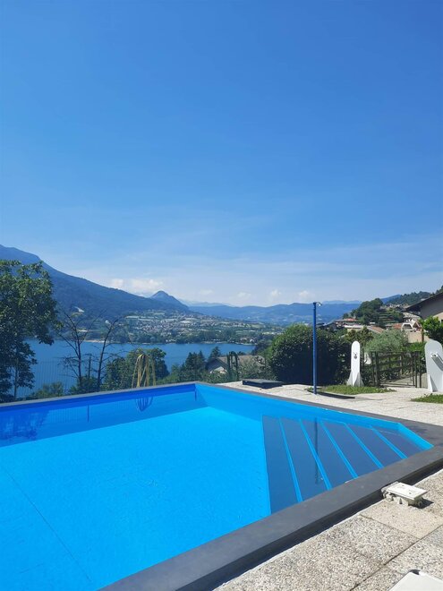 The appartment is on the main floor and consists of a large living area with a stunning view of the lake; a double bedroom and a single bed (with the possibility of adding a small bed in the bedroom and another single bed in the living area on request); bathroom with shower; free communal parking space, with no security guard; and use of swimming pool in the summer months.