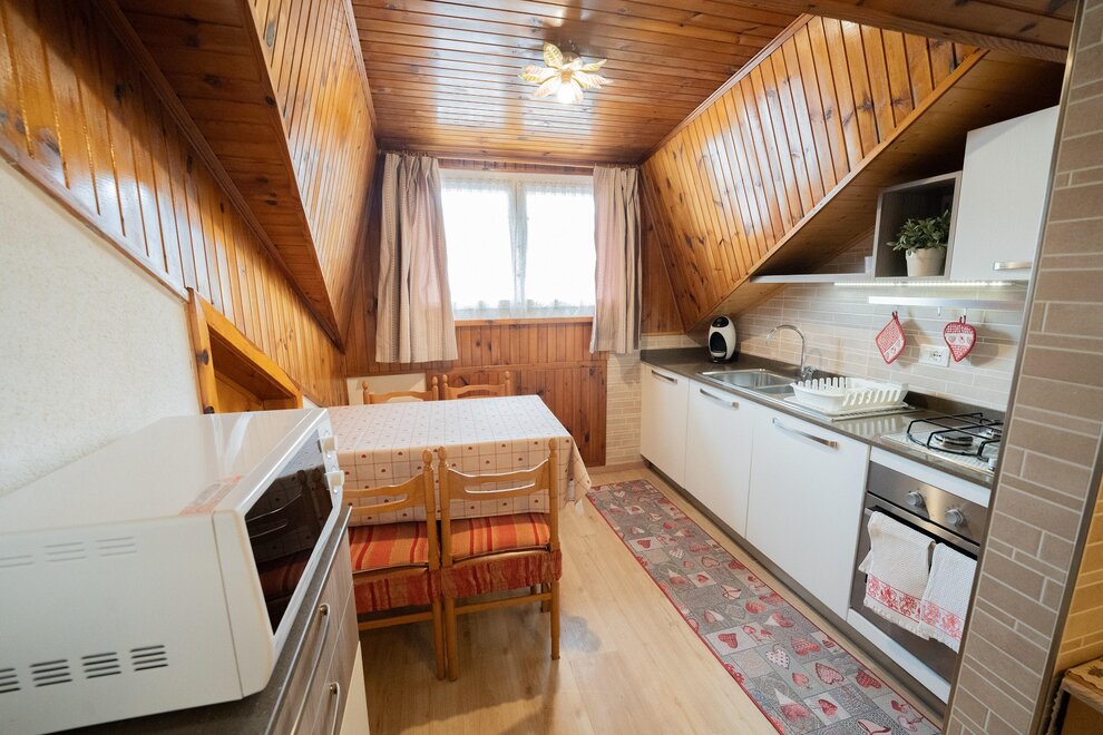 Apartment in Folgaria in a quiet and sunny area. 58 m2 apartment in the attic on the 3rd floor, with panoramic balcony. Kitchen equipped with oven, dishwasher, microwave and coffee machine. Two double bedrooms and bathroom with window with tub/shower and washing machine. The house is quiet and has a garden equipped with relaxing deckchairs for guests. Vacuum cleaner available in the apartment. A parking space and ski and bike storage are available.
