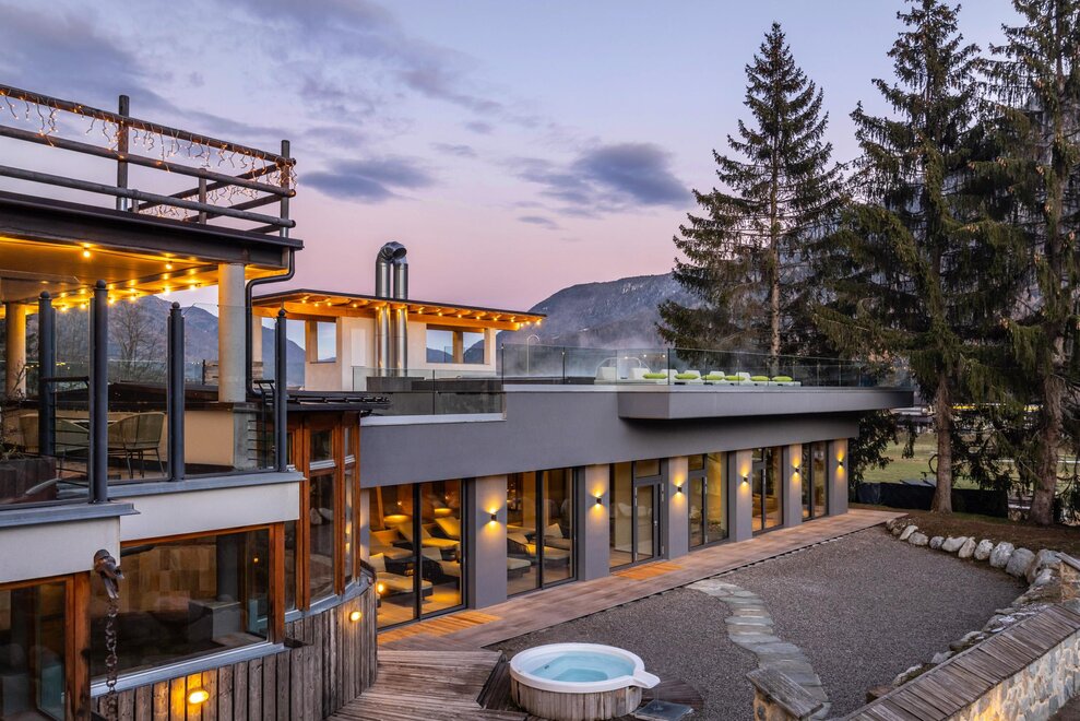 In a quiet location, sunny in winter and cool in summer... around meadows, orchards and the garden with a whirlpool and views of the Brenta Dolomites, Adamello-Presanella and Ortles Cevedale. It offers typical mountain ambience with lots of wood, large windows, spacious rooms, a youthful and informal welcome, and free use of mountain bikes,
