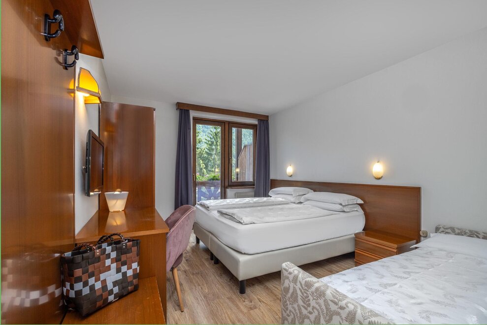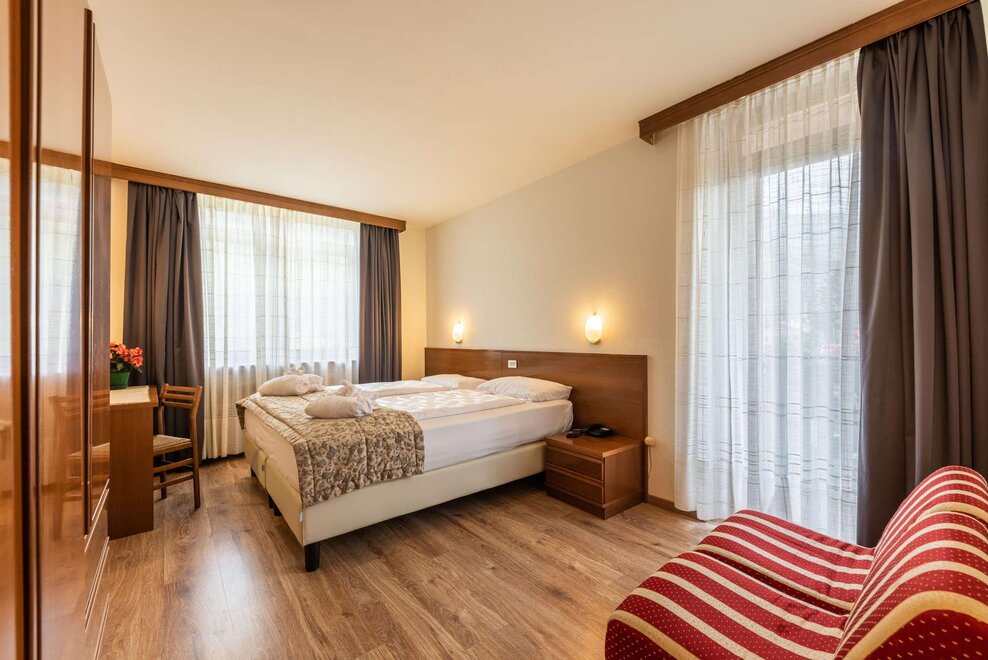 Spacious and comfortable rooms with one or two extra beds - (from 24 to 27 square meter). In sunny position all our double rooms are provided with Tv-Sat, safe, bathroom with window, hairdryer, minibar, telephone, free wifi connection, towels and soft bathrobe (only for adults).