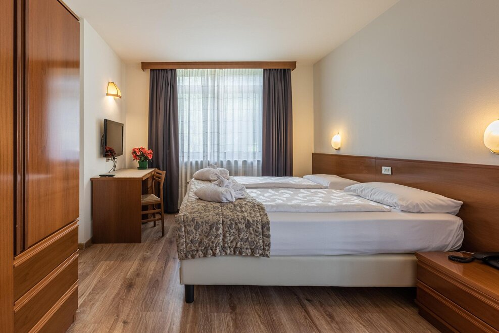 Spacious and comfortable double or twin rooms with balcony (from 20 to 22 square meter). In sunny position all our double rooms are provided with Tv-Sat, safe, bathroom with window, hairdryer, minibar, telephone, free wifi connection, towels and soft bathrobe (only for adults).