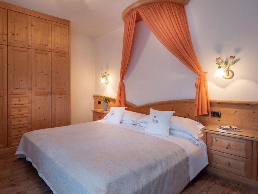 Exclusive suite featuring distinct bedroom and living room (the latter may be used as bedroom for your kids), TV, directline telephone, internet access, safe, writing desk, balcony, mini-bar, ensuite bathroom with shower or bath tub, hairdryer.