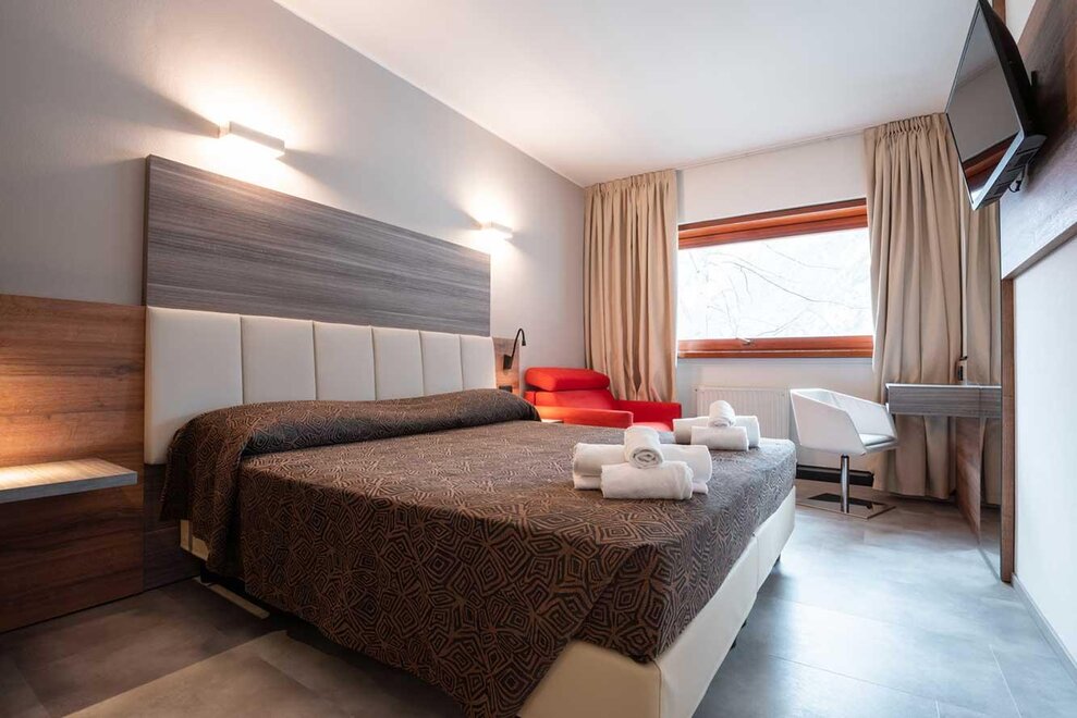 New spacious rooms, Approximately 22 meters, furnished in contemporary style, with views of Monte Brento and the pool area. Antibacterial and sound-absorbing PVL flooring, heating, desk, safe, TV/LCD, telephone, free wi-fi, bathroom with shower and hairdryer.