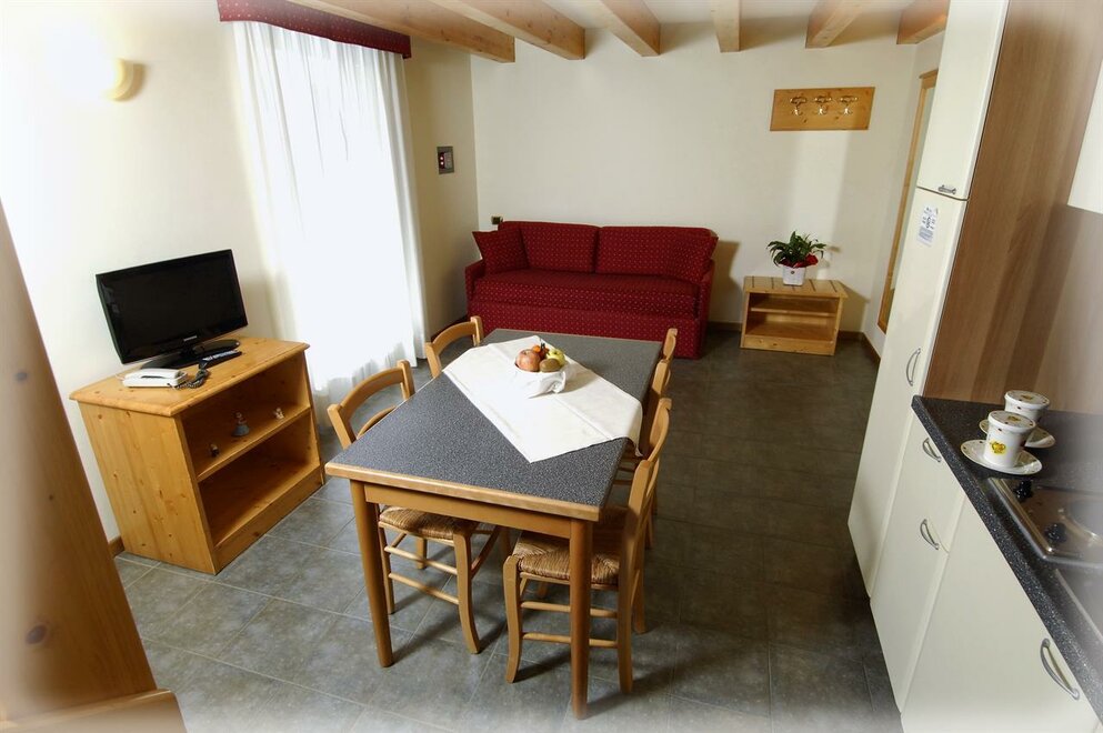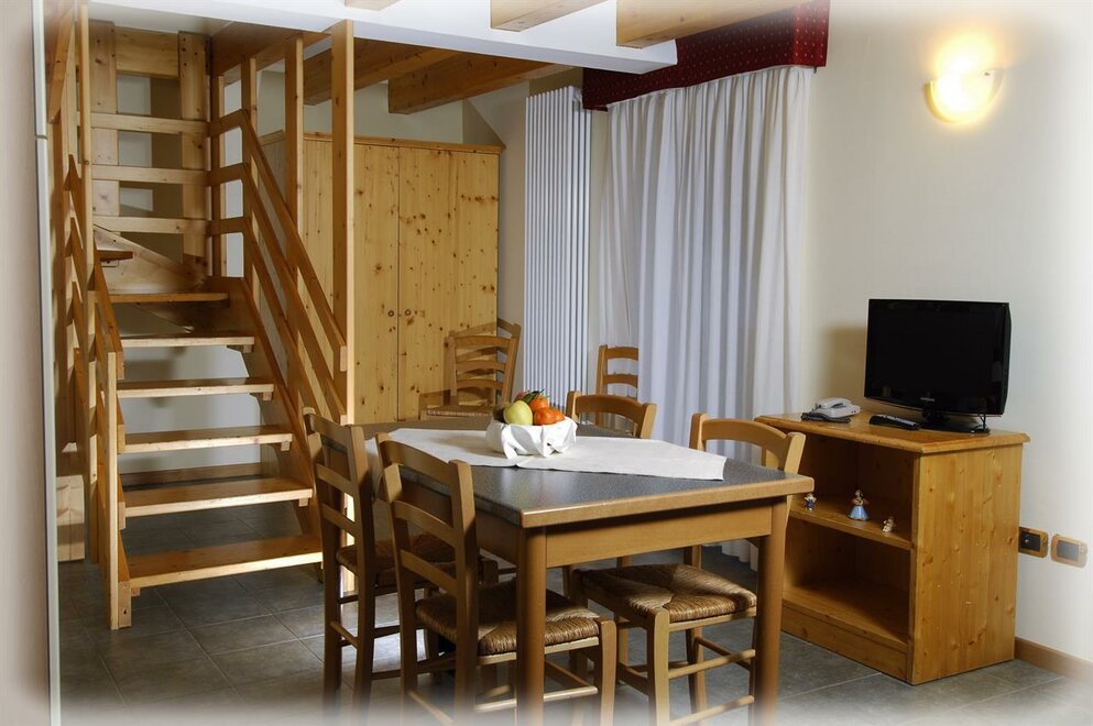 Located about 150 metres from the village centre-in a peaceful and sunny position-it offers all amenities: wellness centre, playground, common living rooms and bar, mini-club and videogame hall, car park and garages. It offers both rooms and two-room apartments with kitchenette; both are equipped with private bathroom, balcony, telephone, satellite TV and a safe. Entertainment, walks with an alpine guide, mini-club.