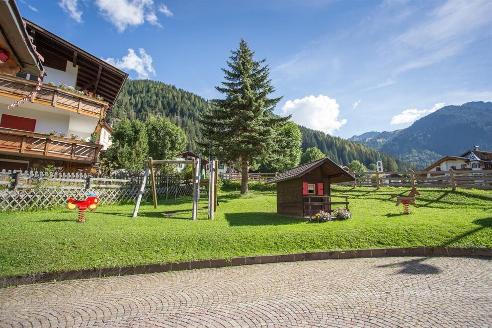 Once you get to Canazei, you will see the hotel on your right hand side just as you enter the town. Before you reach the stream crossing the road, turn right.
