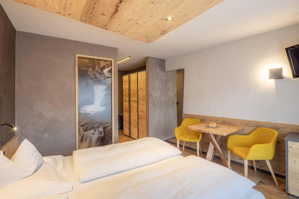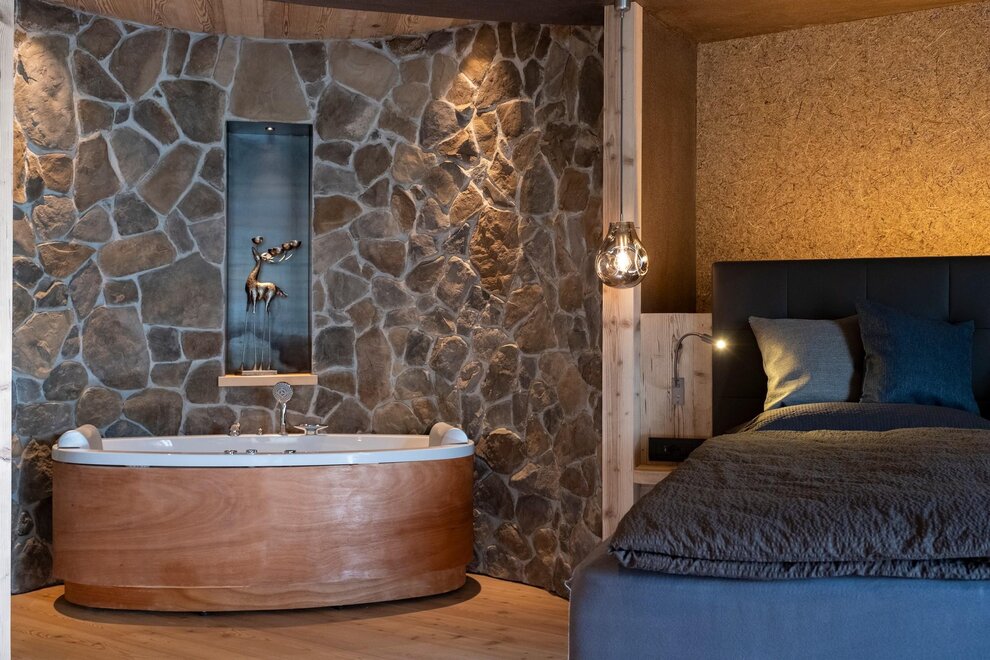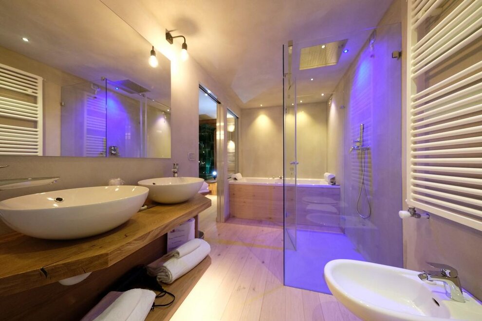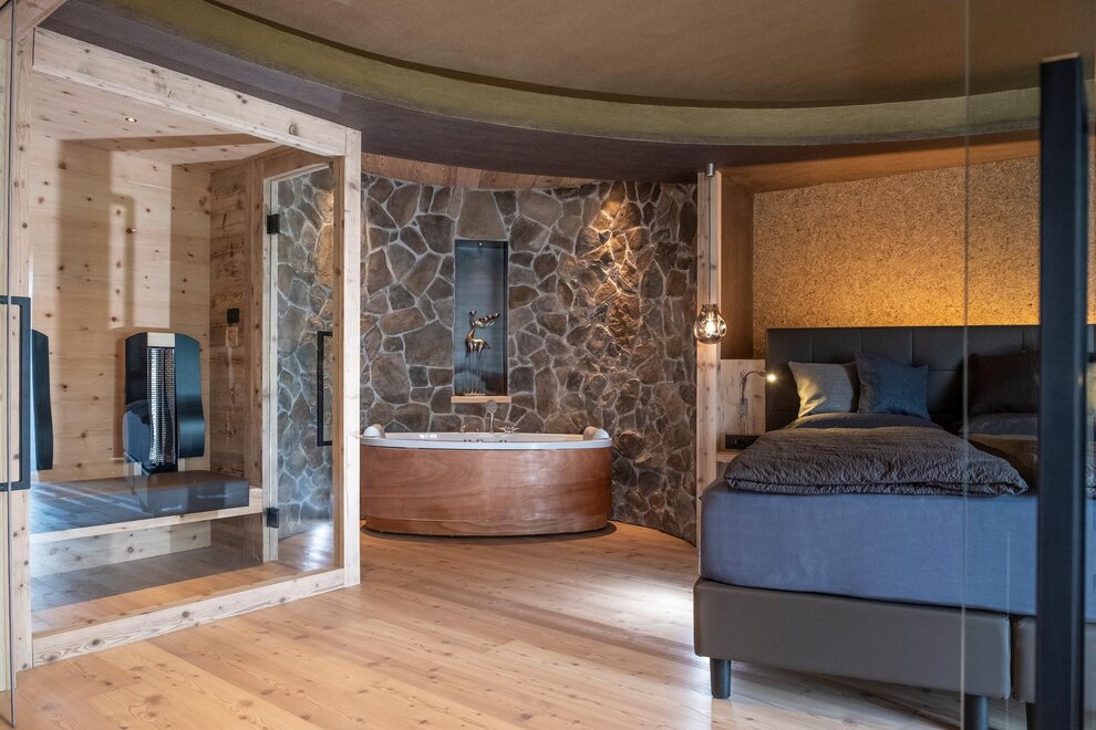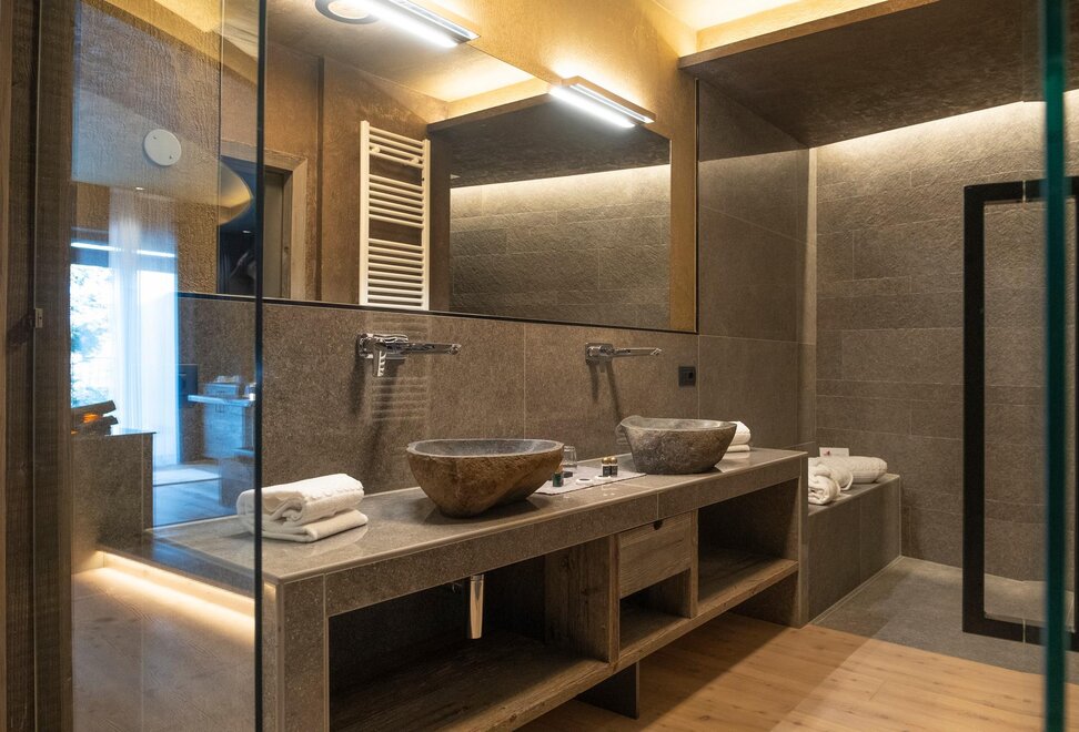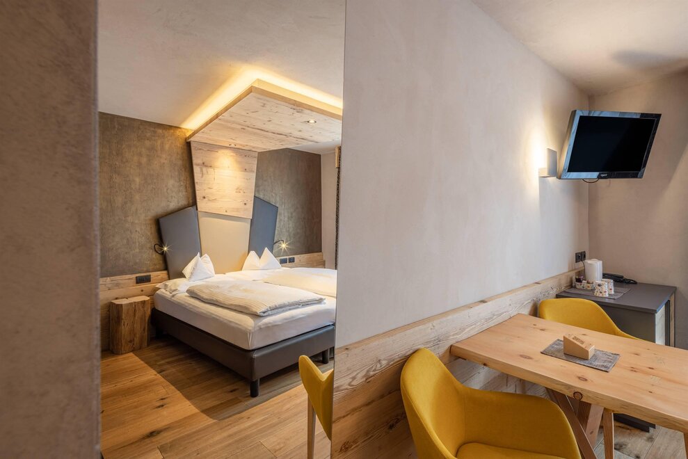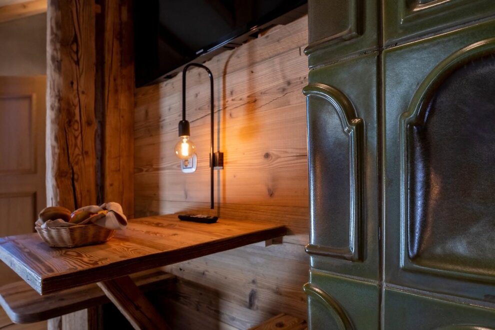 Occupancy: 2 personsA most charming Junior Suite of 40 m2 with floors and furniture made of wood and an original “Stufa a ole” – a typical traditional ceramic wood stove to let you breath the mountain life.