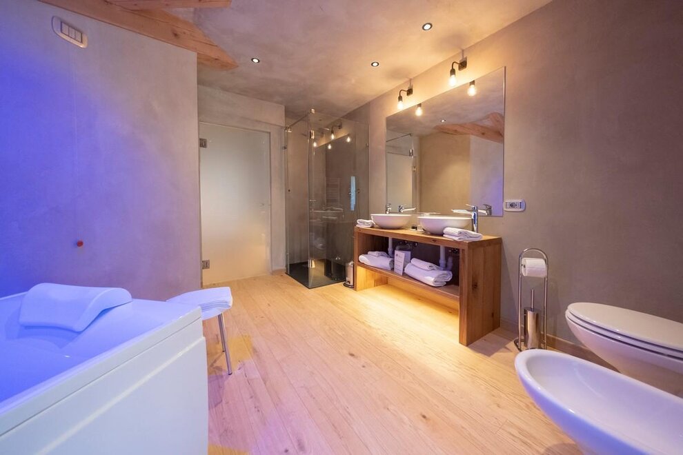 A most charming Suite of 50 m2 with balcony where you can enjoy a marvellous view of the Dolomites and the Lagorai Chain sipping a glass of wine.