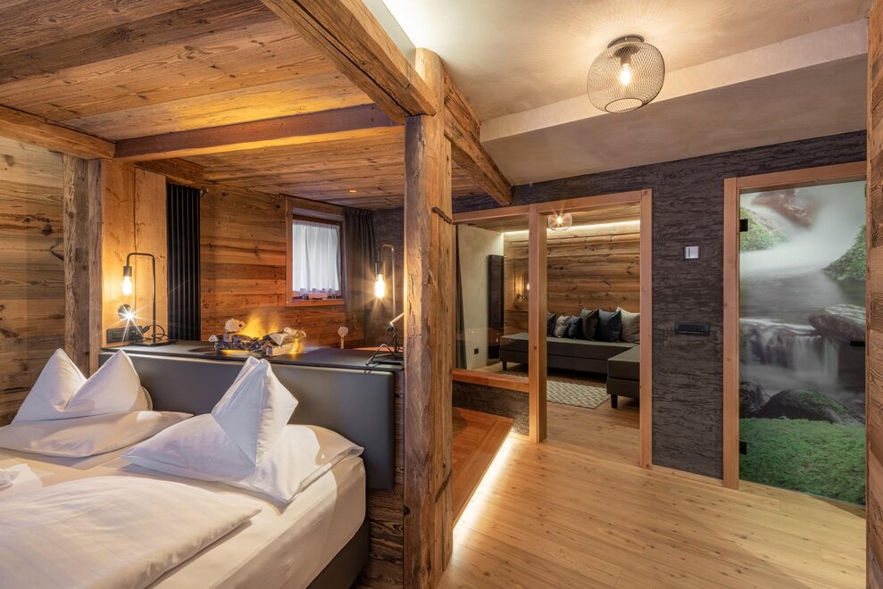 A most charming Suite of 50 m2 with floors and furniture made of Fiemme wood to let you breath the mountain life.