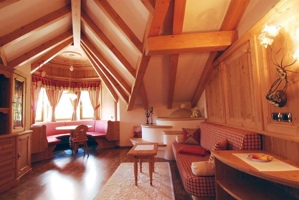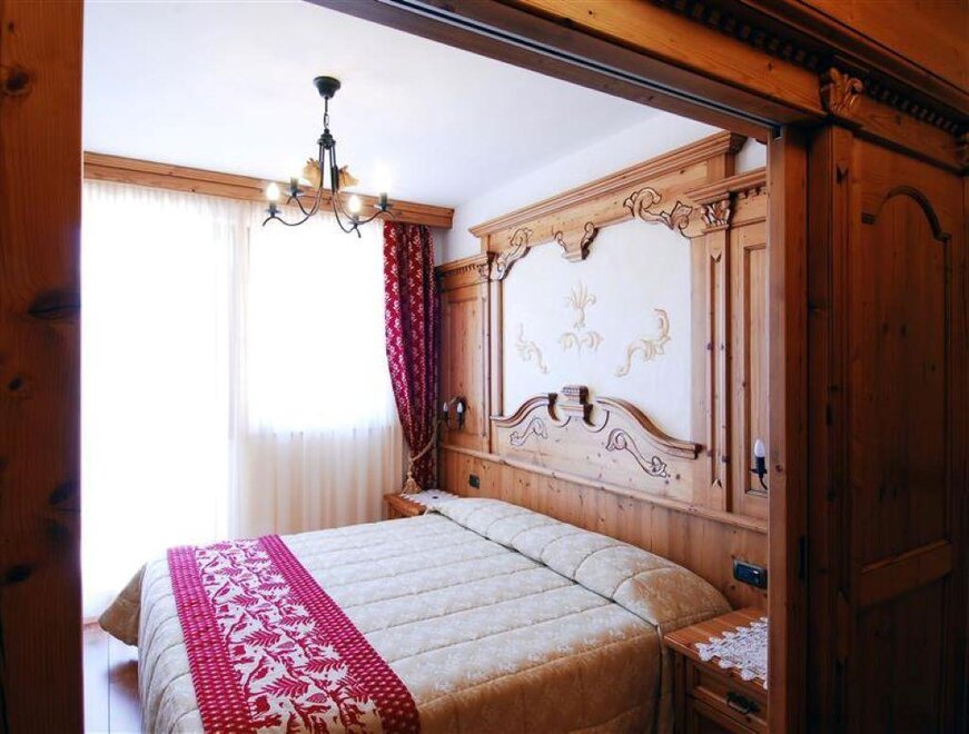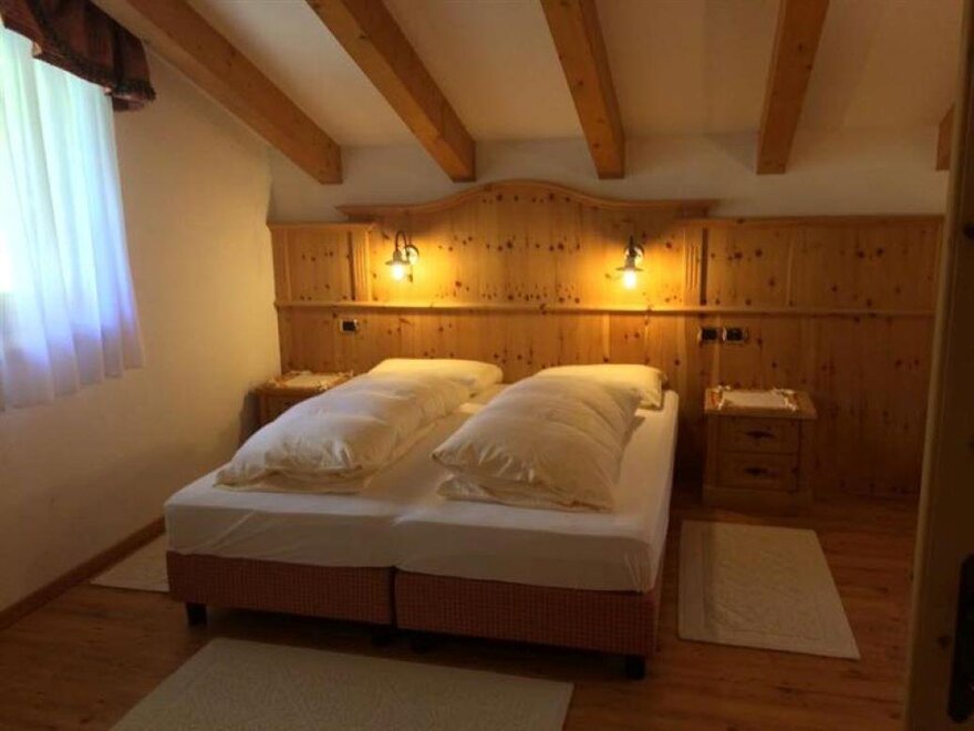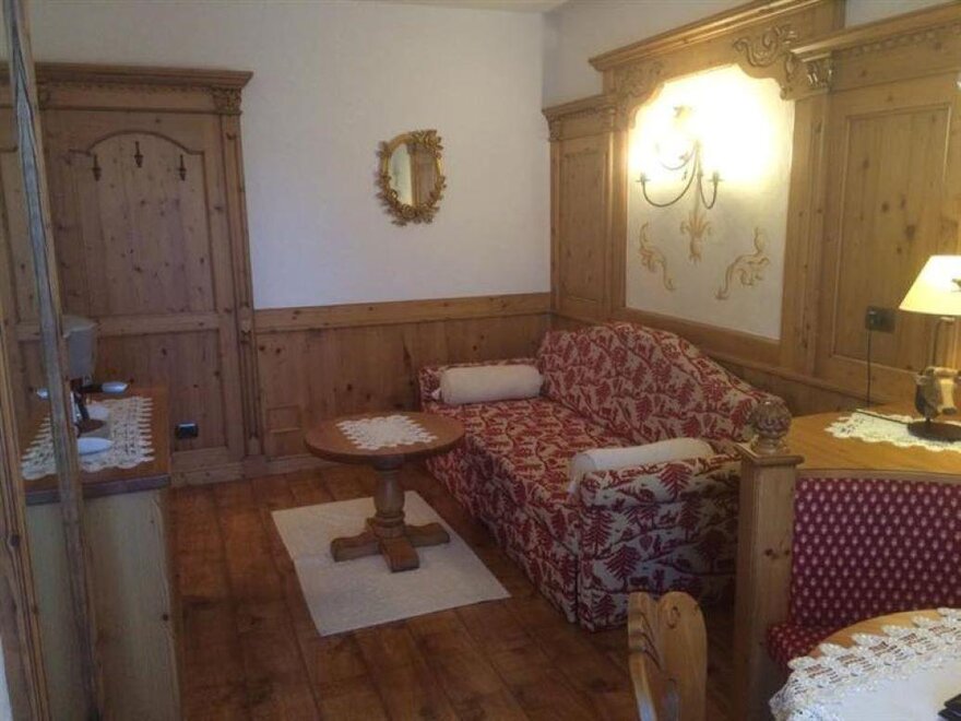 Spacious and bright suite, furnished with attention to detail in solid alpine wood. Two-room apartment with sitting room and bedroom, bathroom with shower and tub, TV, Wi-Fi, large balcony overlooking the garden and Mount Tognola.