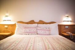 Our double rooms are located on the first and second floors, have a balcony (4 of 7) from which you can admire a fantastic enrosadira in the evening on the Cimon della Pala and are ideal for those traveling alone or in pairs.Bed distribution