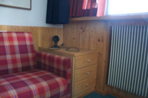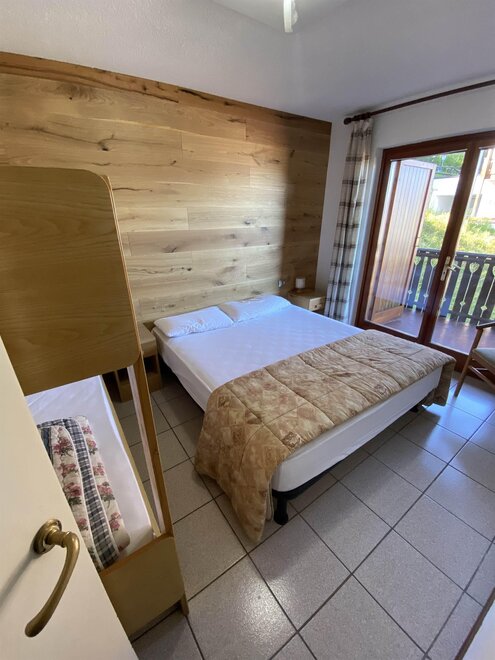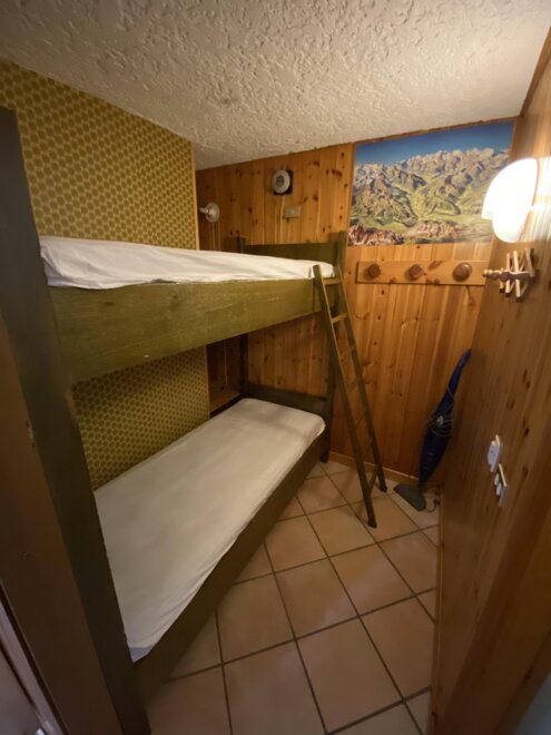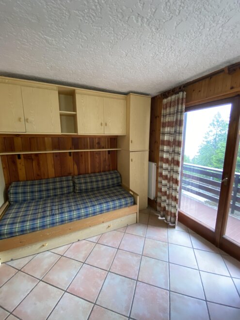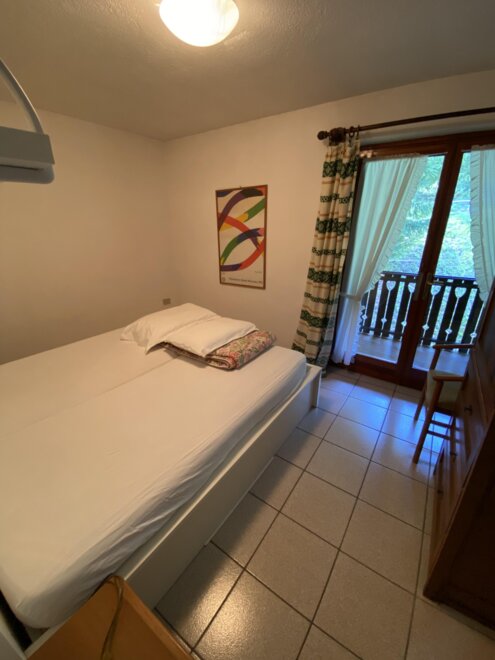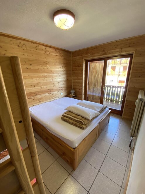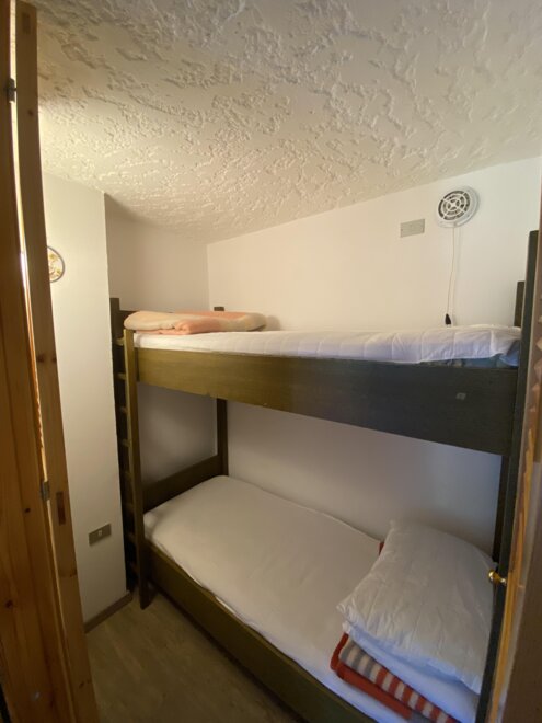 Apartment served by an elevator on the fourth floor with a stunning view of the valley, right in front of the red slope and the Belvedere cable car. Composed of a living room with a sofa bed, kitchenette, and balcony. Double bedroom with bunk bed, sunny balcony with a view, and a full bathroom. On the other side, a second double bedroom and bathroom. Both bathrooms have a shower. The kitchen is separable from the living room with a sliding door. Energy class G CIN IT022233C2N3ZNWQNK CIR 022233-AT-918458
