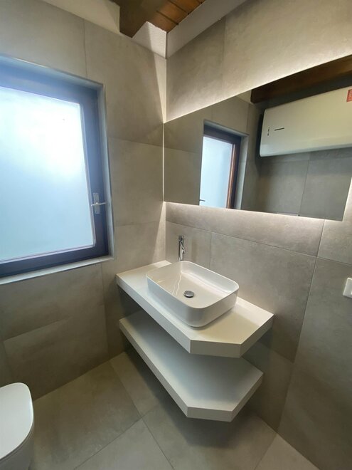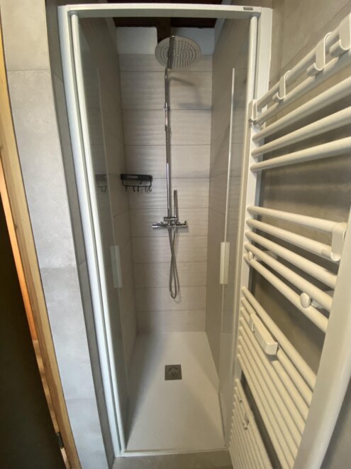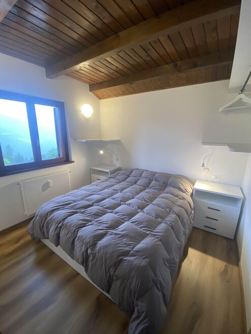The bathroom, modern and functional, is equipped with a shower. Completing the property is a panoramic balcony overlooking the beautiful valley, offering great views.