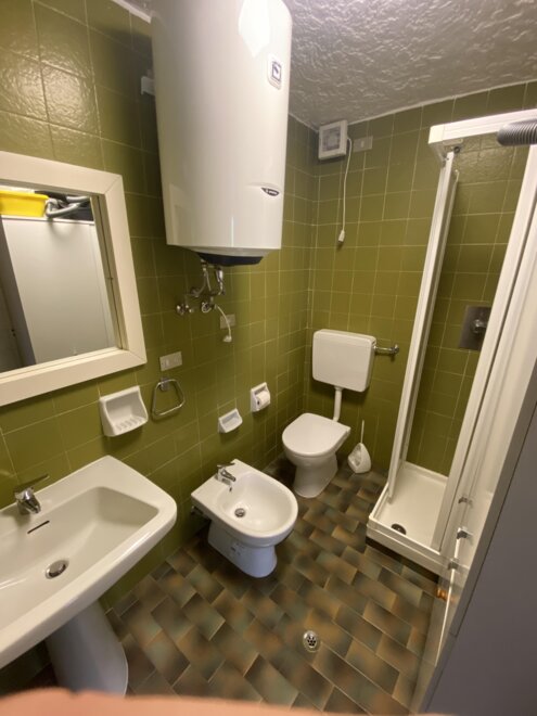 Bilocale is a One-room apartment: double bedroom, livingroom with sofabed 2 places and little space with bunkbed in the livingroom. Bathroom and kitchen corner. Balcony.