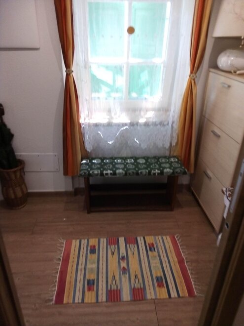 toilet laundry, seasonal rental too (summer), crockery and cutlery , apartment without fitted carpet, heater, electric stove, cooking possibilities, kitchen and table linen, kitchen utensils, socket close to bed, refrigerators available, garden, bed linen available, simple furnishing, family room/apt., maximum no. of pets: 1, feather beds, essentials (towels, bed linen, soap, toilet tissue), hairdryer, kitchen, modem connection, internet connection available, towels available, dishes available, WiFi, TV, closet, refrigerator, bedding, cable TV, kettle, country stove, coffeemaker, linen provided , tiled or marmor floor, iron, living-room with kitchenette, oven, safe, CD player, DVD player, Wi-fi free of charge, open plan kitchen/living room, vent hood, ADSL