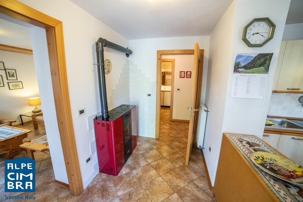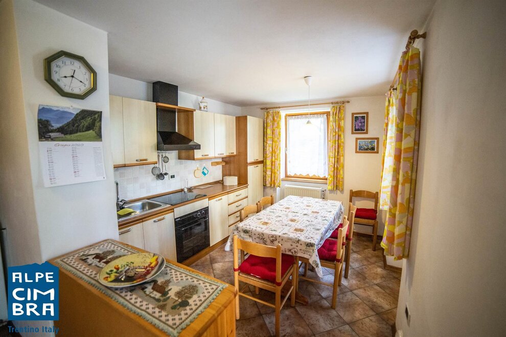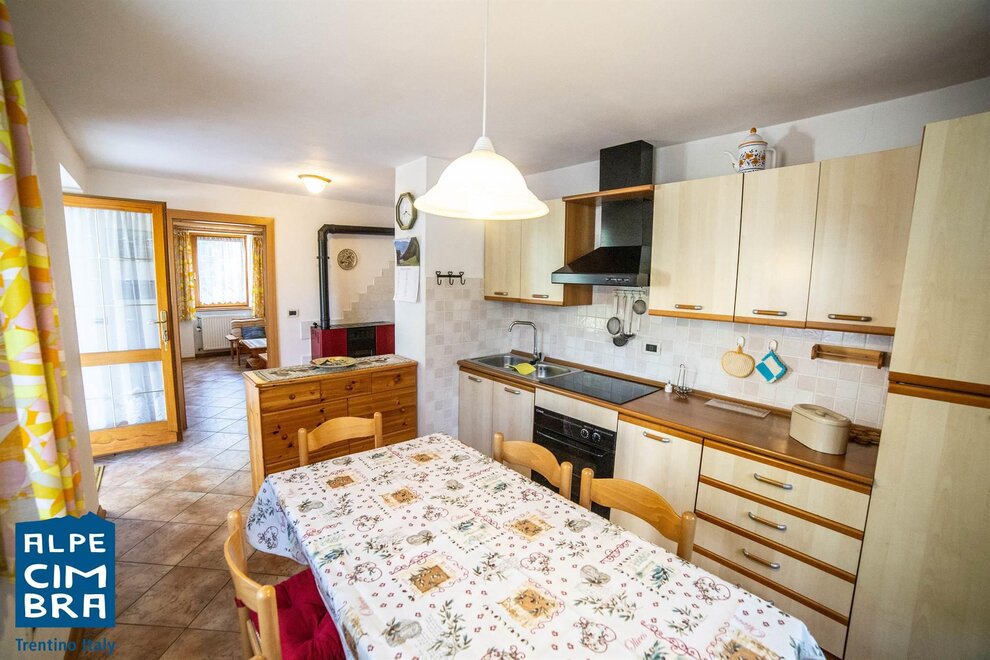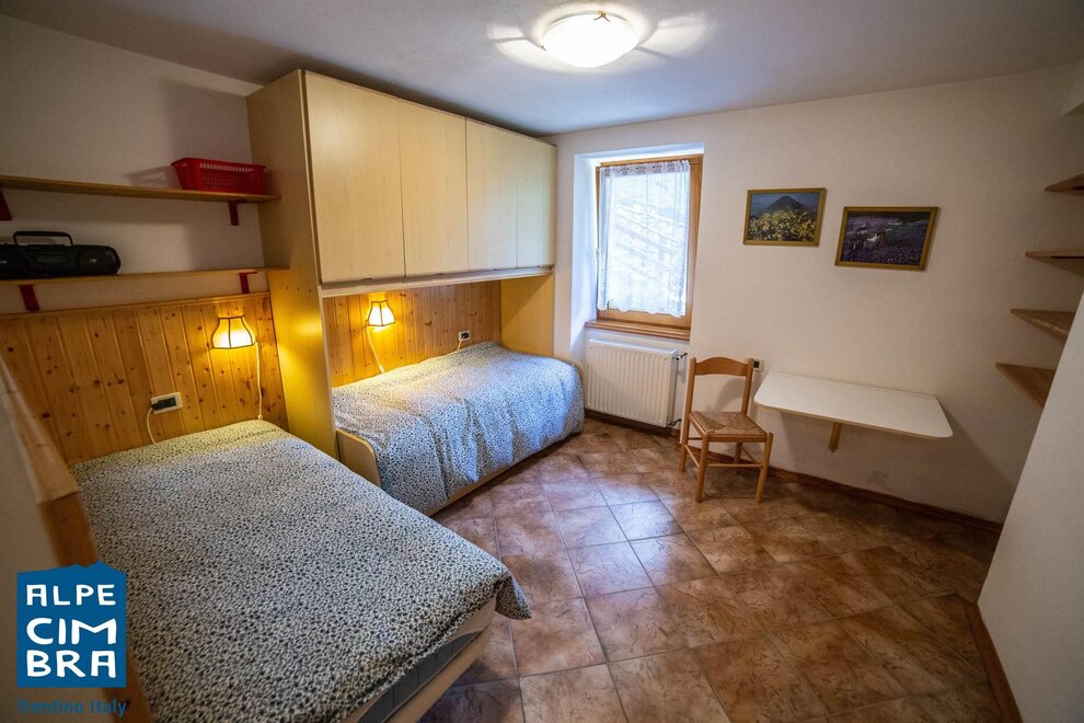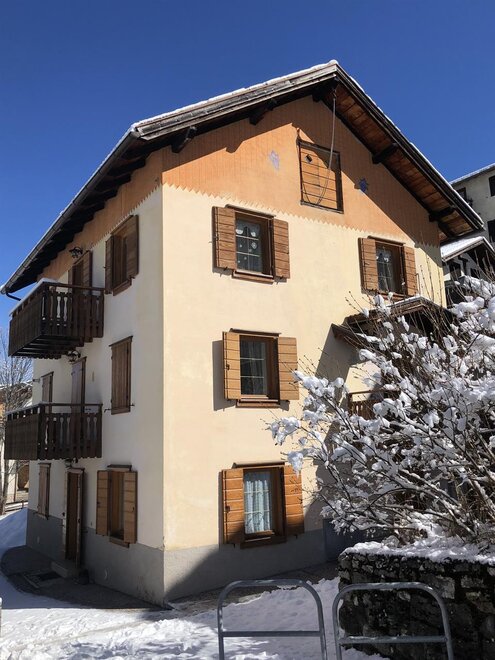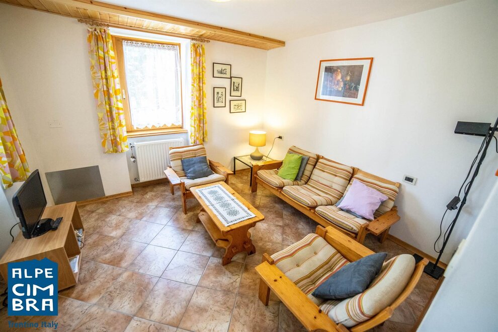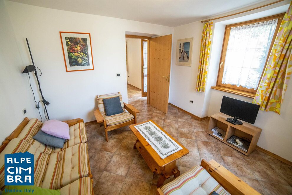 Apartment of about 100 sqm on the ground floor of a sunny mountain house. Equipped kitchen with stovetop, oven, fridge. One double bedroom, one twin bedroom, and in the living room a sofa bed if needed. Bathroom with shower and laundry room shared with another apartment. It has a terrace and garden. Parking space and storage for skis and bicycles.