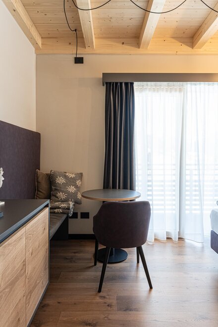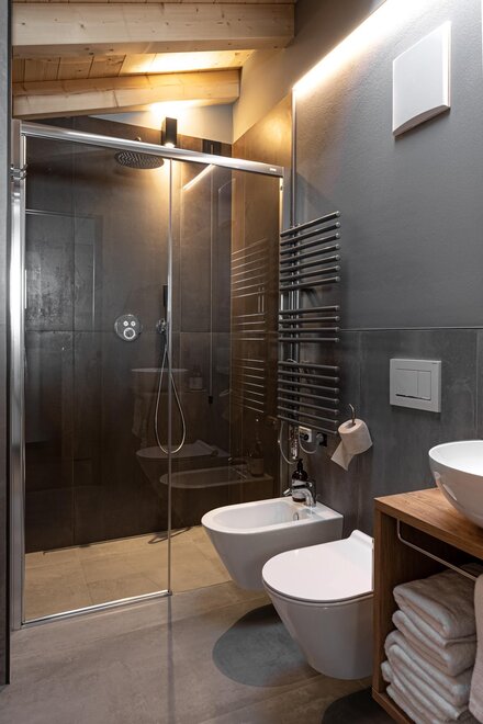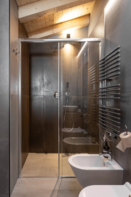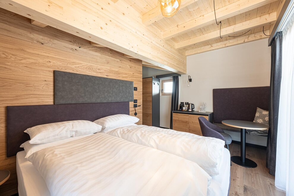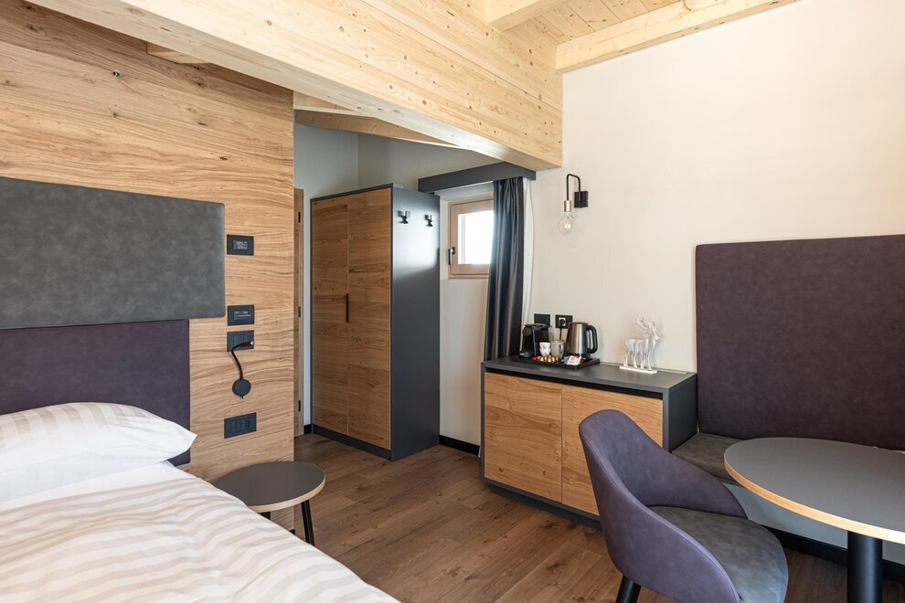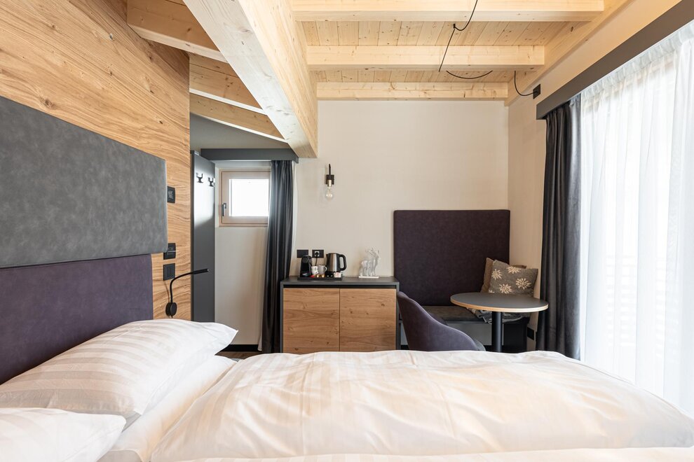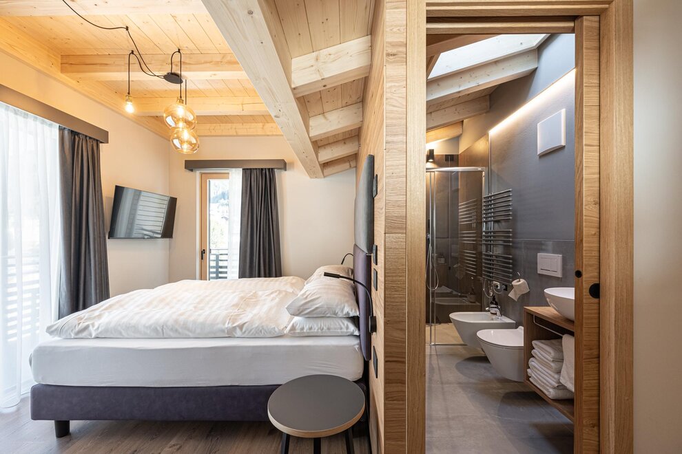 Welcome to La Violetta B&B overlooking Lake Soraga in Val di Fassa, a chalet-style structure that we have decided to reinterpret in a contemporary key, both in design and architecture. Situated amidst imposing cliffs that drop sheer into the green surrounded by a landscape that embraces the vastness of the Alps, and its scents, our B&B represents a reality capable of declining concepts such as beauty, well-being and the joy of living in the mountains.