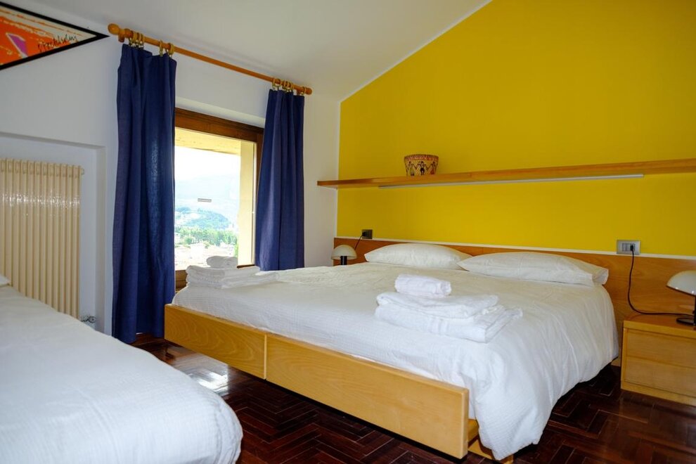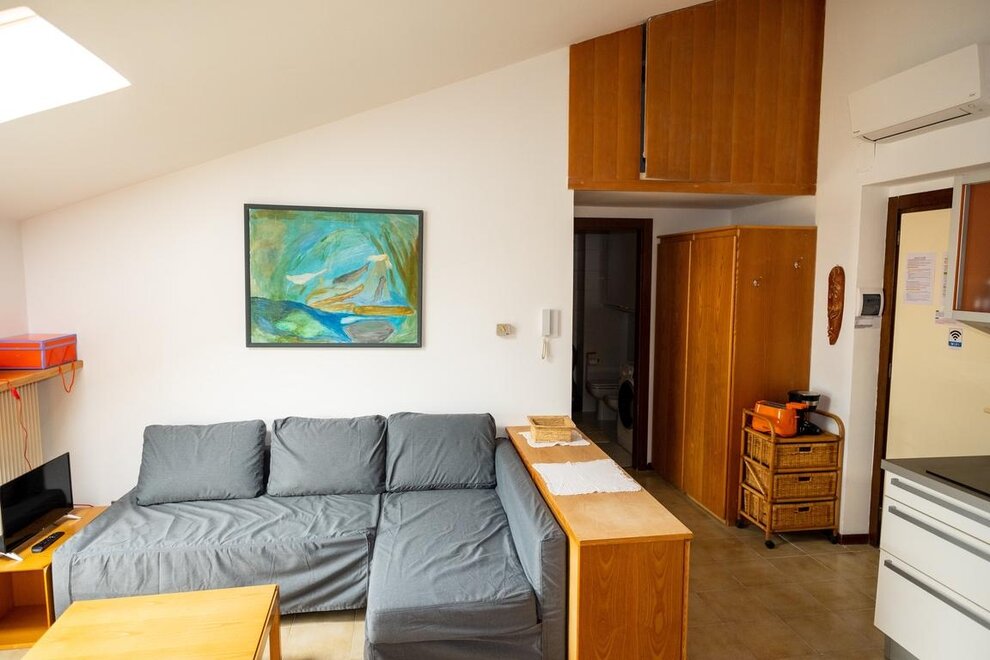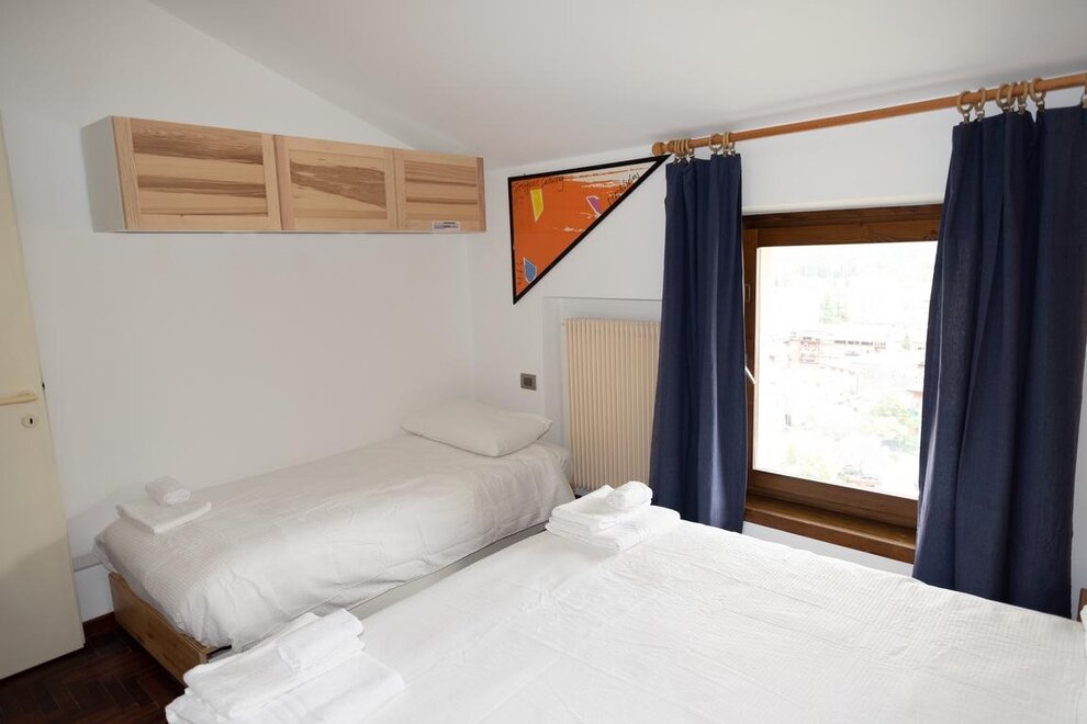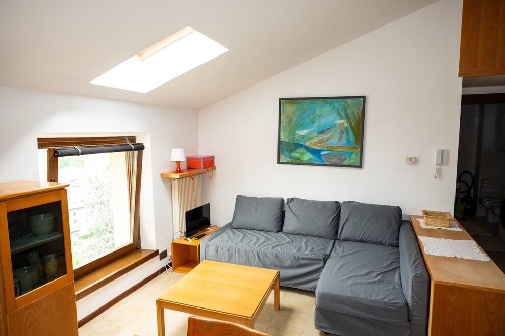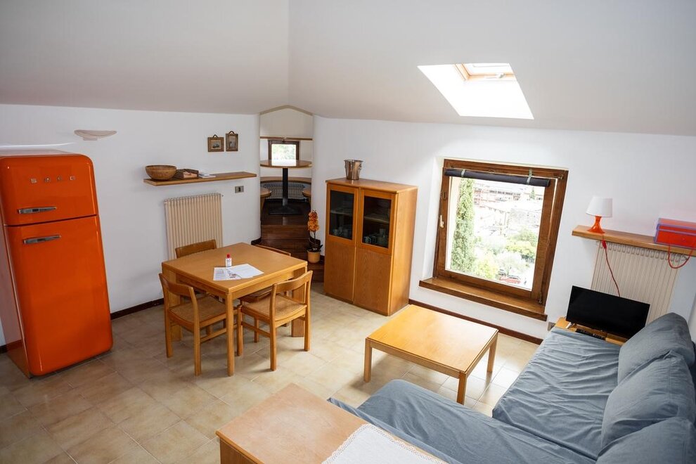 The apartment accommodates 5 people: a double bed and a single bed in the bedroom, and a French sofa bed in the living room. From the apartment, you can enjoy a unique view of the rooftops, the ancient walls of the historic center of Riva del Garda, and the lake.