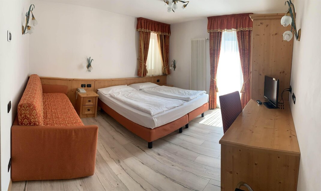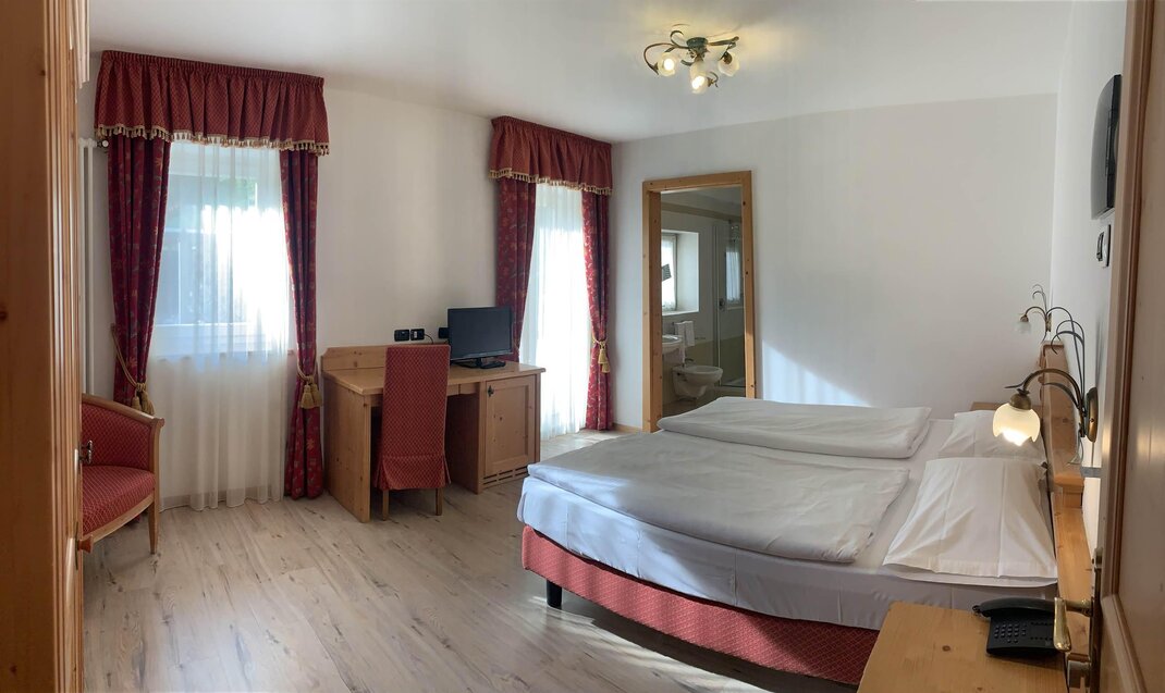 Cozy double/twin room, approx 18-20 smq, with double or twin beds, flatscreen TV, desk, telephone, WIFI Internet access, minibar and spacious bathroom with shower or bathtub and hairdryer.
