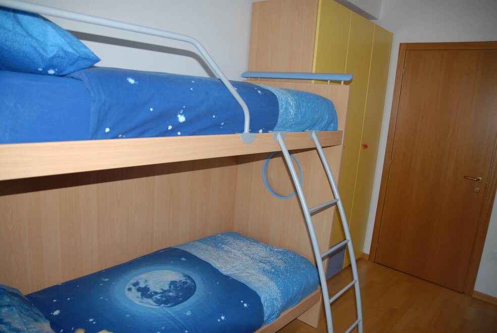The apartment is located on the third floor of the "Stellune" residence. It has an elevator with exit also on the square/parking side where private parking space is available. It consists of a double room, a room with two bunk beds, a bathroom and living room/kitchen.
