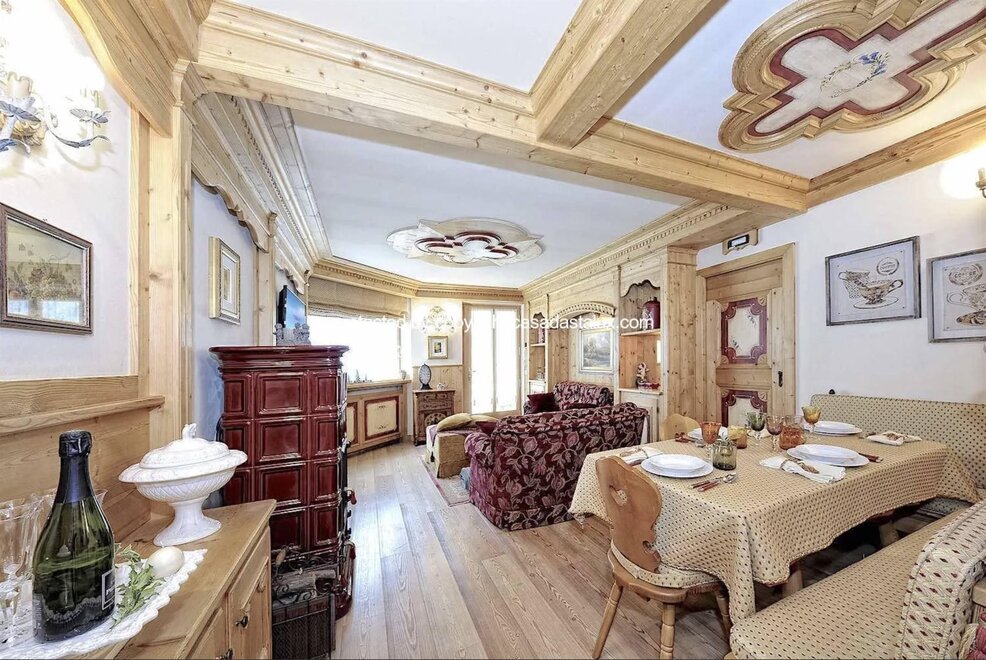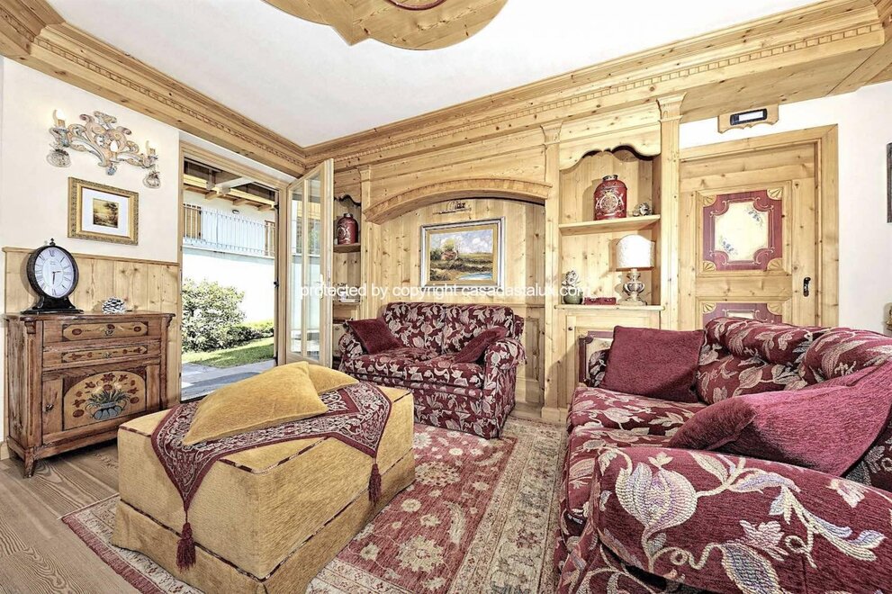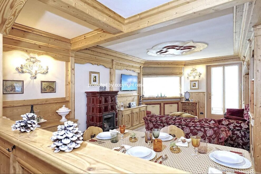 Luxury Apt Dolomites 2 is a 2-bedroom, 1- bathroom flat located on the ground floor of a quiet residential building. It features prestigious interiors, with refined boiserie covering all the walls. In addition, larch wood floors provide the backdrop for the custom-made furniture. Alpine tradition can also be felt in the superb tiled stove. Located on the ground floor, it boasts a small planted garden perfect for pets. The entrance consists of a fully equipped kitchenette with cooker, dishwasher, a small refrigerator, coffee maker, microwave, large dining table, and an open-plan living room with two sofas. The sleeping area consists of a double bedroom + walk-in wardrobe, smart TV, a bathroom with shower. Second bedroom with single bed and second pull-out bed, wardrobe. Private garage for one car, washing machine. The flat is located in a quiet residential area of Carisolo and is part of a small exclusive condominium. Located just 4 minutes' drive from the Pinzolo ski lift, which also offers ski hire and ski storage. Cross- country skiing track only 2 minutes' drive away.