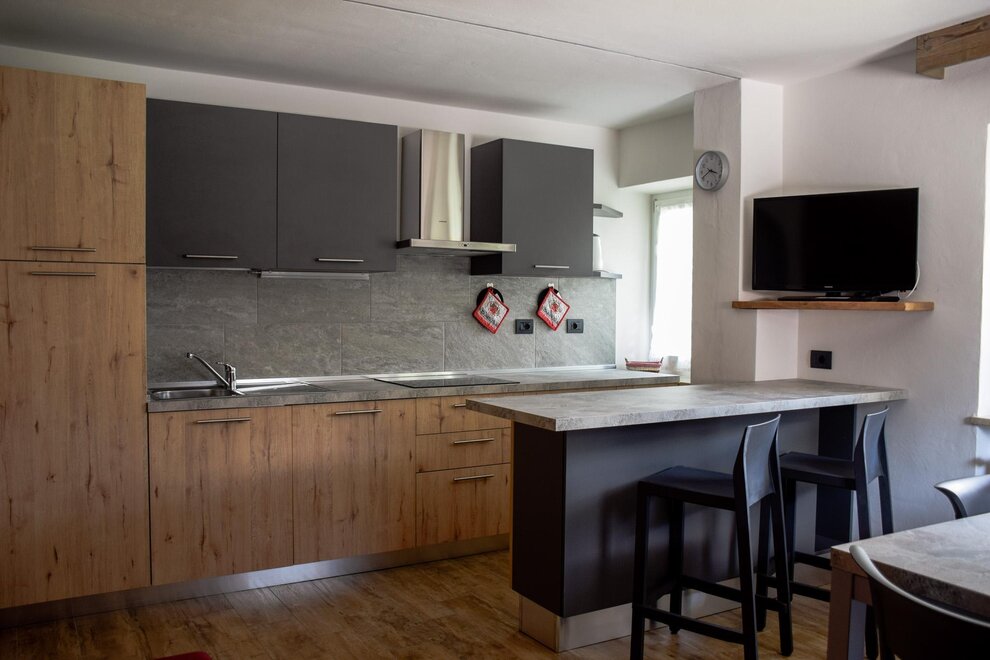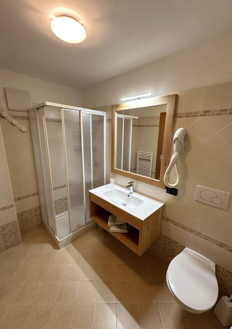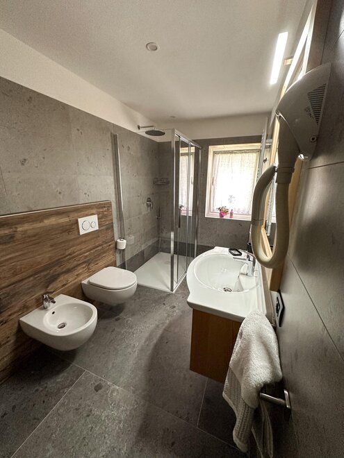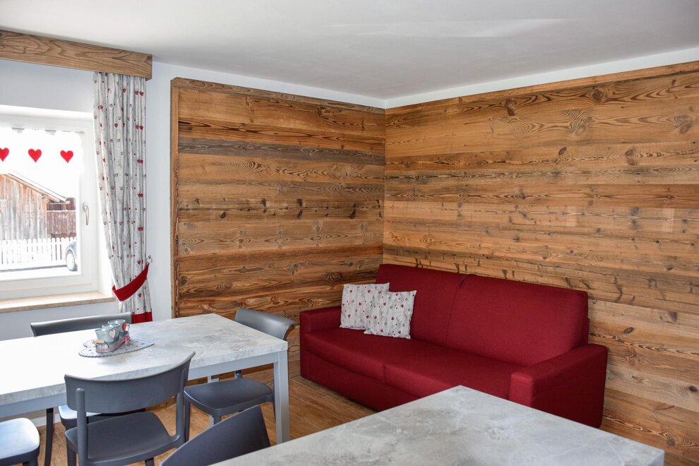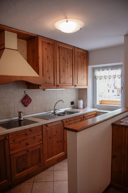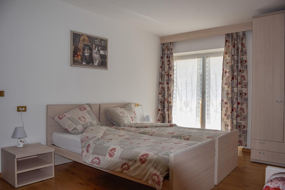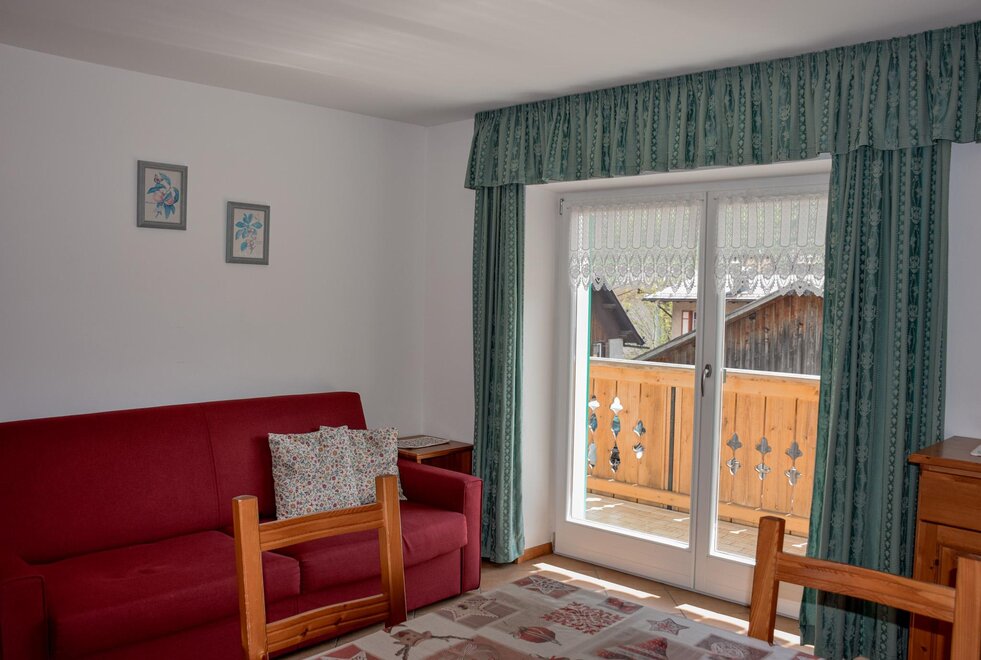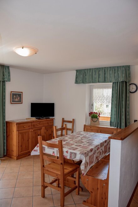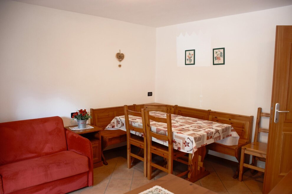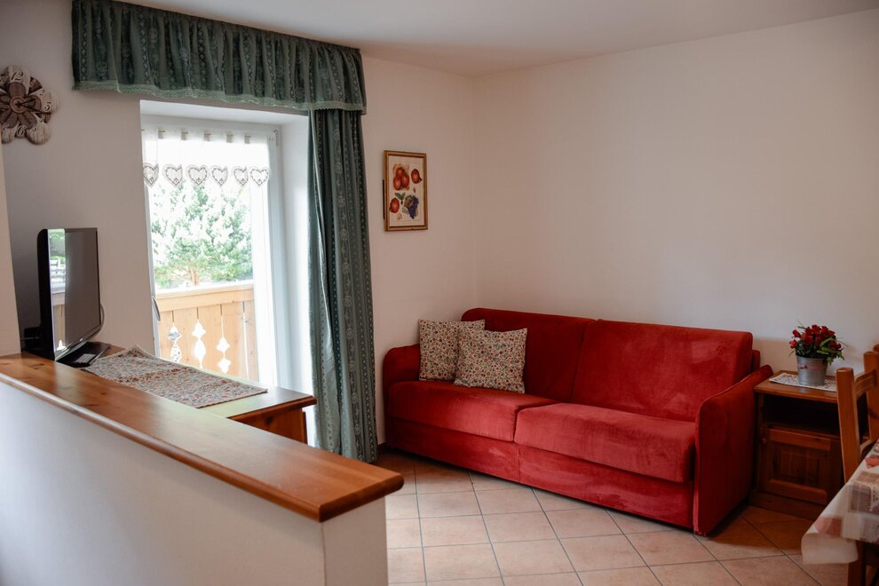 The flats are all furnished and fully equipped with a frigde, an oven, color TV and Sat TV, WI FI, you will be given the blankets, pillows or quilts that you require whereas the bed linen as well as the towels and table cloths are not included. We provide you with a laundry room in the basement where you can iron and wash. Next to it you find the Skiroom with ski-boots dryer.