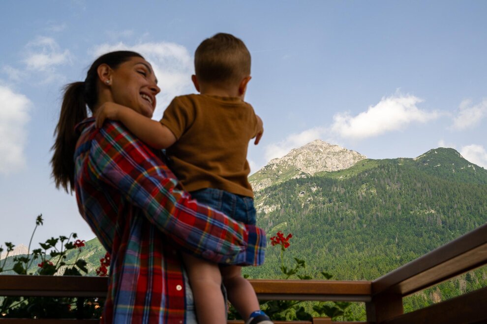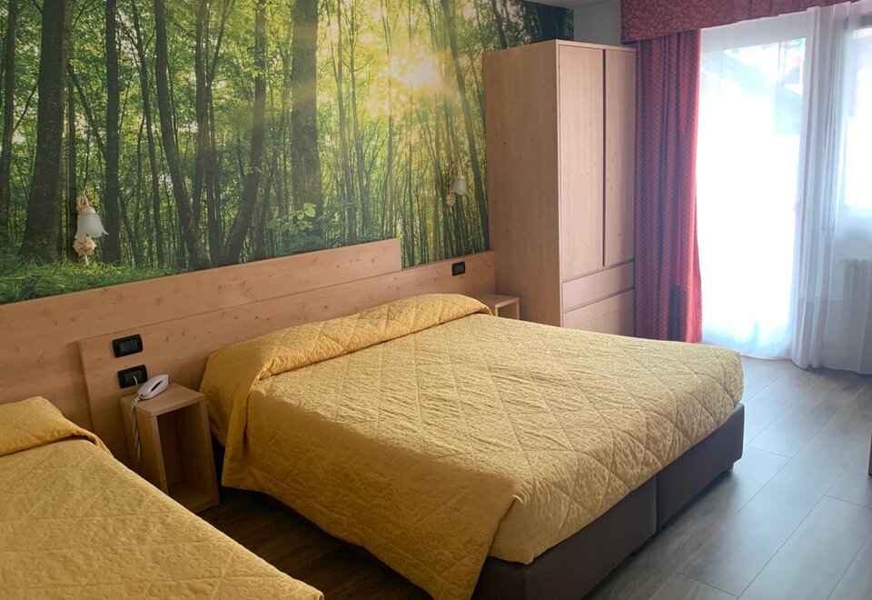 Family Dolomiti accommodation for families with two connecting rooms, spacious in warm solid wood, with wi-fi, telephone, LCD, safe, hairdryer, complimentary toiletries, equipped shower. All rooms have a balcony. For children, cots, bed rails, changing tables, minibars, bottle warmers, and strollers are available.
