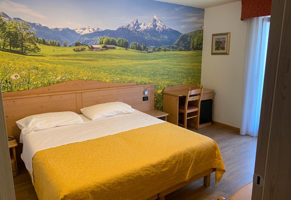 Doubleroom Ginevra, with solid wood interiors. There is wi-fi, telephone, LCD, safe, hairdryer, courtesy set, hydromassage shower. Most have a balcony. Baby cots, bedside tables, baby cribs, mini fridge, hot water bottle and strollers are available for children.