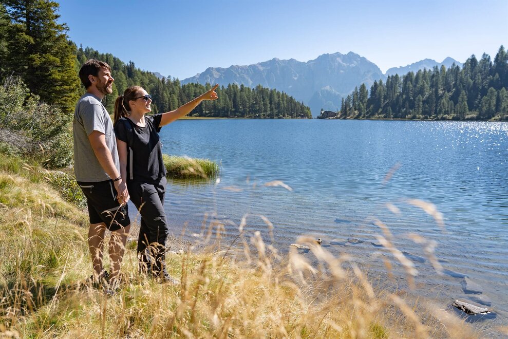 A blue lake amidst the Val Meledrio forests, the Brenta Dolomites mirrored in its waters. This is the scene that greets you at the Rifugio Malghette, built at the beginning of the 20th century on the shores of the lake and run by the Angeli family. Up there, at 1,888 metres above sea level in the Presanella group, you can stroll around the lake, set off to discover the “Tre Laghi” (Three Lakes), or simply relax on the terrace built on stilts over the water while enjoying typical Trentino food. Open From 20 June to 20 September Before leaving for your hike, always contact the manager to verify the actual opening of the mountain hut Walks From Lake Malghette you can walk to Lago Alto and from there to the basin of the Tre Laghi in 1 hour 40 mins (difficulty E). A 40-minute walk on the path up the southern slope of Monte Vigo takes you to the Rifugio Orso Bruno (difficulty E).