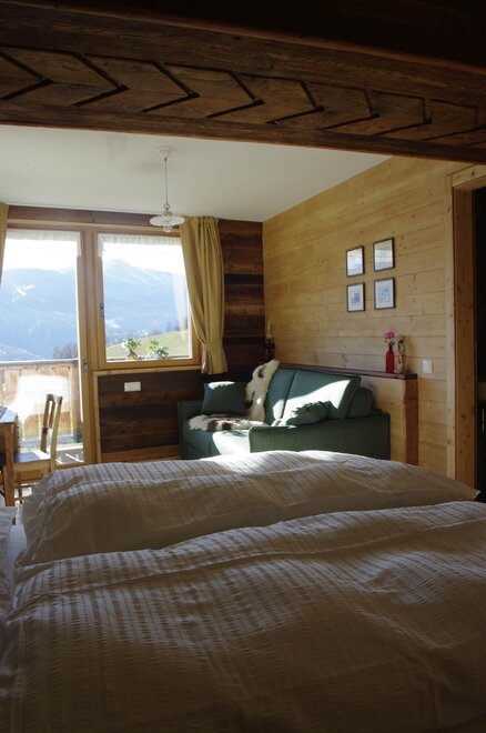 Maso le Mosne is located at 1200 meters above sea level, about 6 km from the center of Malè, the main town of Val di Sole. A long time ago, our Maso was a farmer’s barn, and it still tells us about a life of subsistence and the hard work in the stables and in the fields. We restored it in 2016 with the methods of green building, using only natural materials: wood, lime, clay.