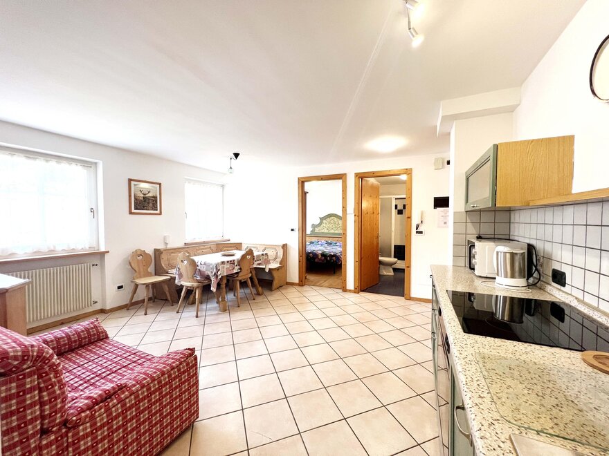 The apartments are located in a central position in the Piaz De Ramon. The reentrance with respect to the square, guarantees a cosy and quiet location. Bakery (retail, not oven) and bank on the ground floor of the House, which is served by a lift. Washing machine, dishwasher, oven and microwave in all apartments. Possibility of storage room and parking space on request.